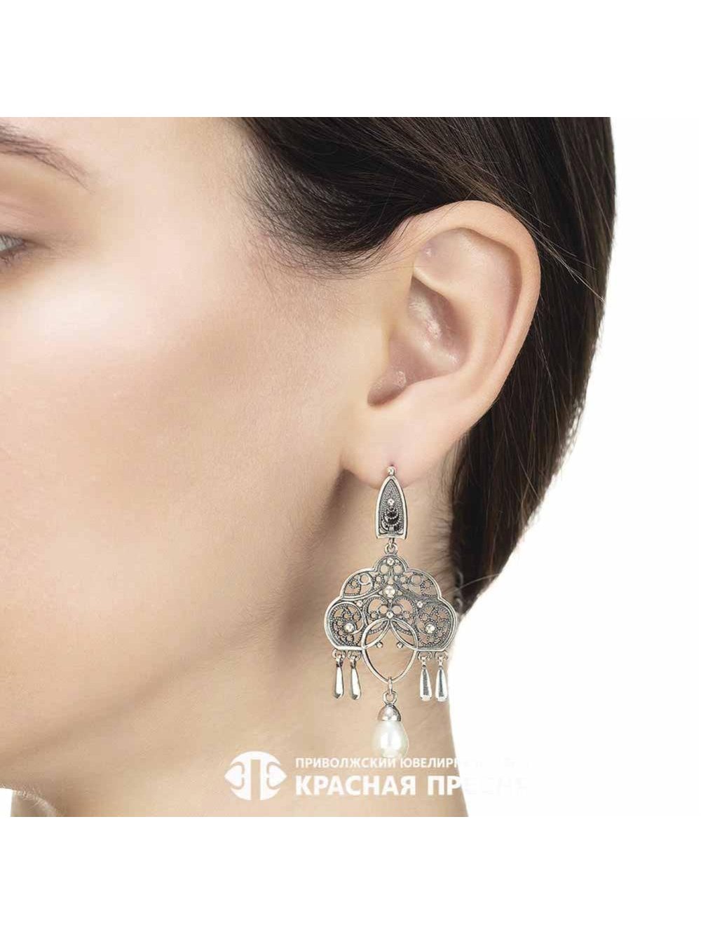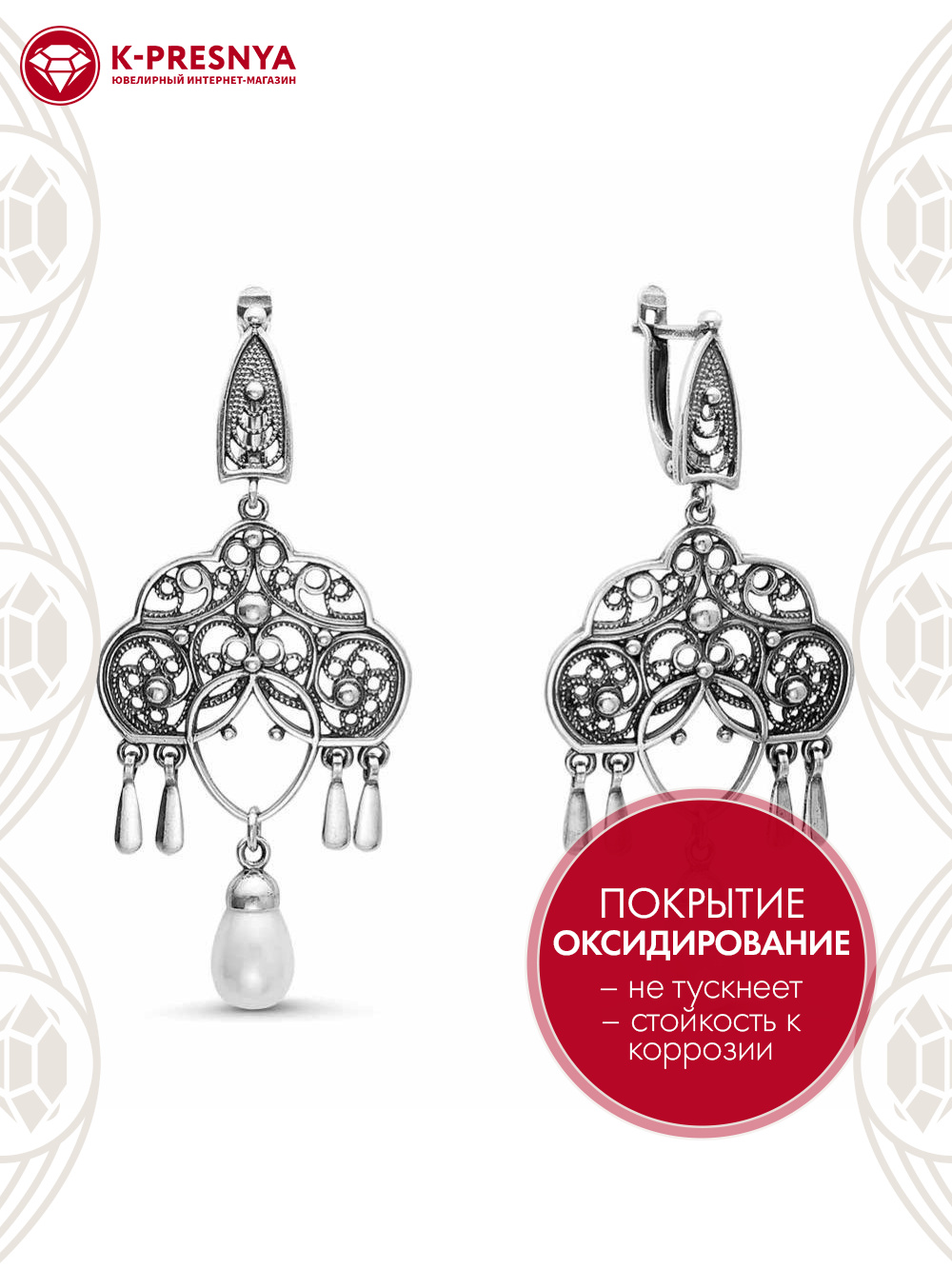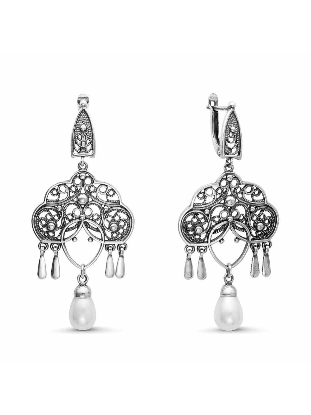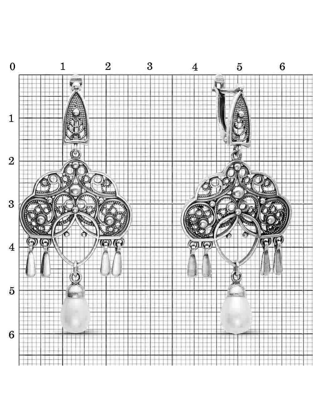 Серьги серебро 925 пробы, покрытие - оксидирование, вставка - имитация жемчуга
