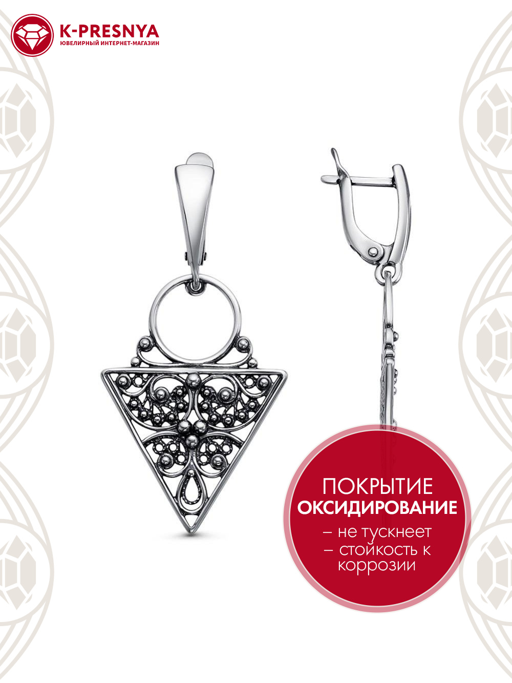Серьги серебро 925 пробы, покрытие - оксидирование, без вставок