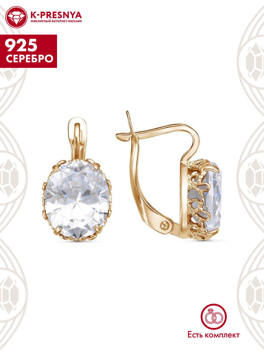 Серьги серебро 925 пробы, покрытие - золочение, вставка - фианит (недрагоценный камень)