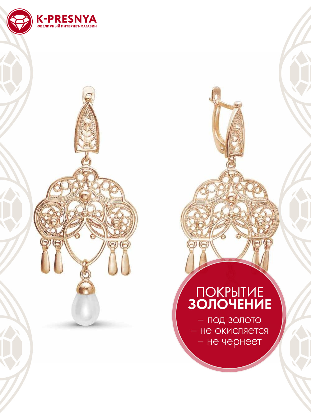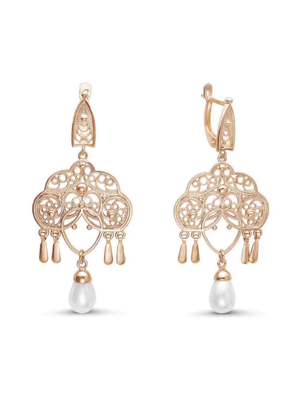 Серьги бижутерия, покрытие - золочение, вставка - имитация жемчуга