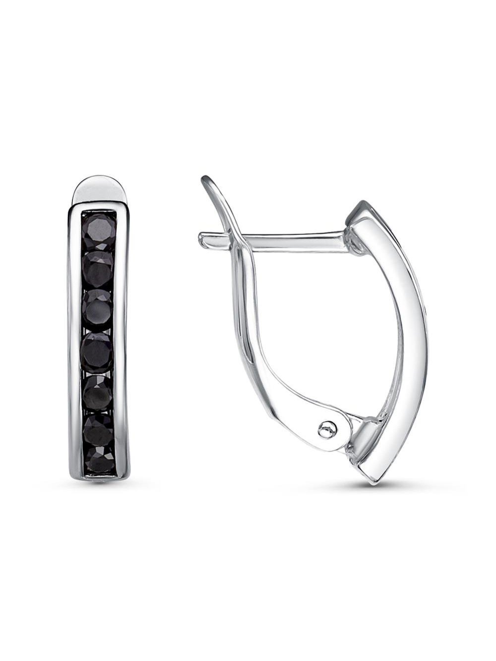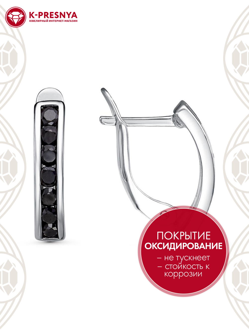 Серьги серебро 925 пробы, покрытие - оксидирование, вставка - фианит (недрагоценный камень)