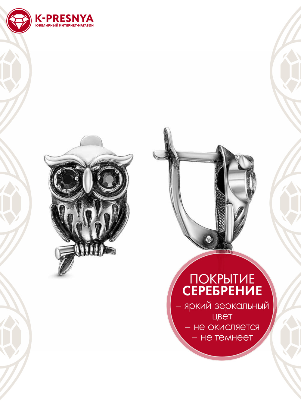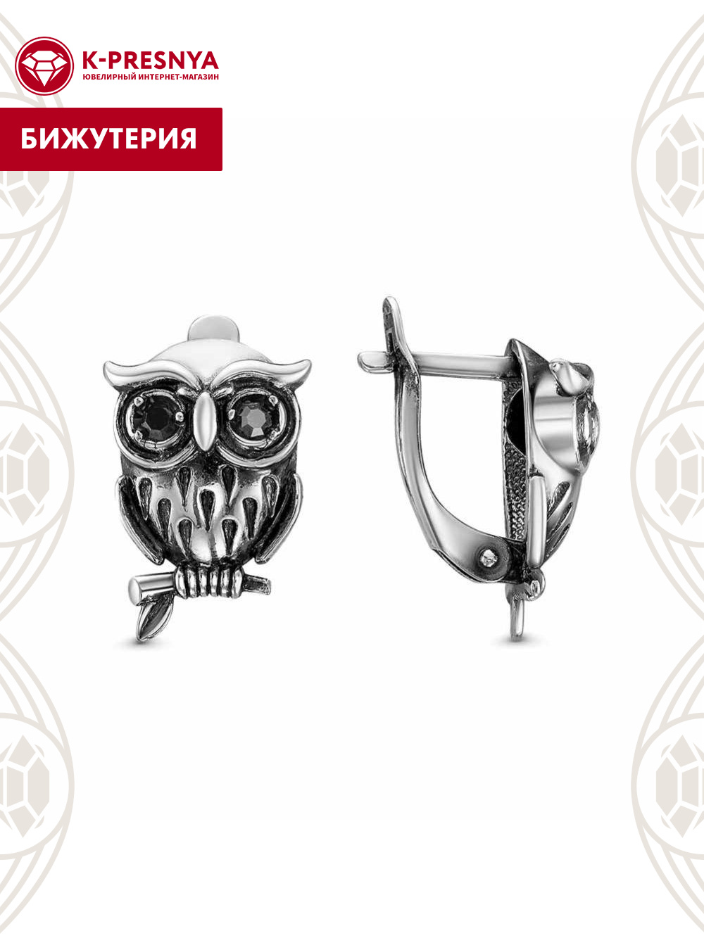 Серьги бижутерия, покрытие - серебрение с оксидированием, вставка - стекло ювелирное preciosa