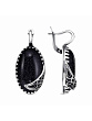 Серьги бижутерия, покрытие - серебрение с оксидированием, вставка - искусственный нефрит