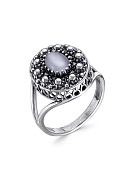 Серьги бижутерия, покрытие - серебрение с оксидированием, вставка - искусственный кошачий глаз