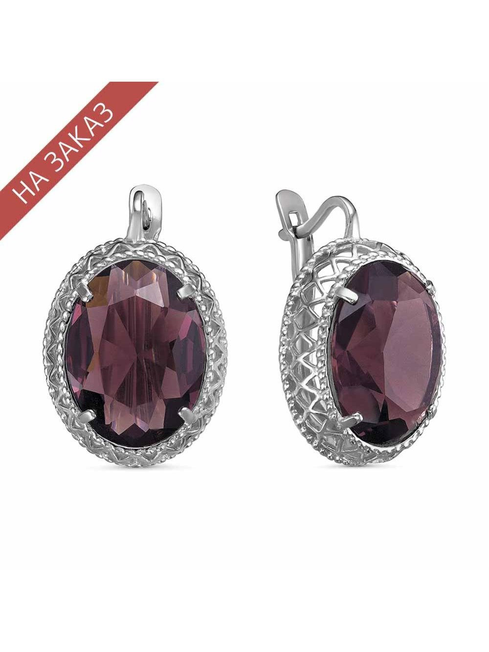 Серьги серебро 925 пробы, покрытие - родирование, вставка - искусственный альмандин
