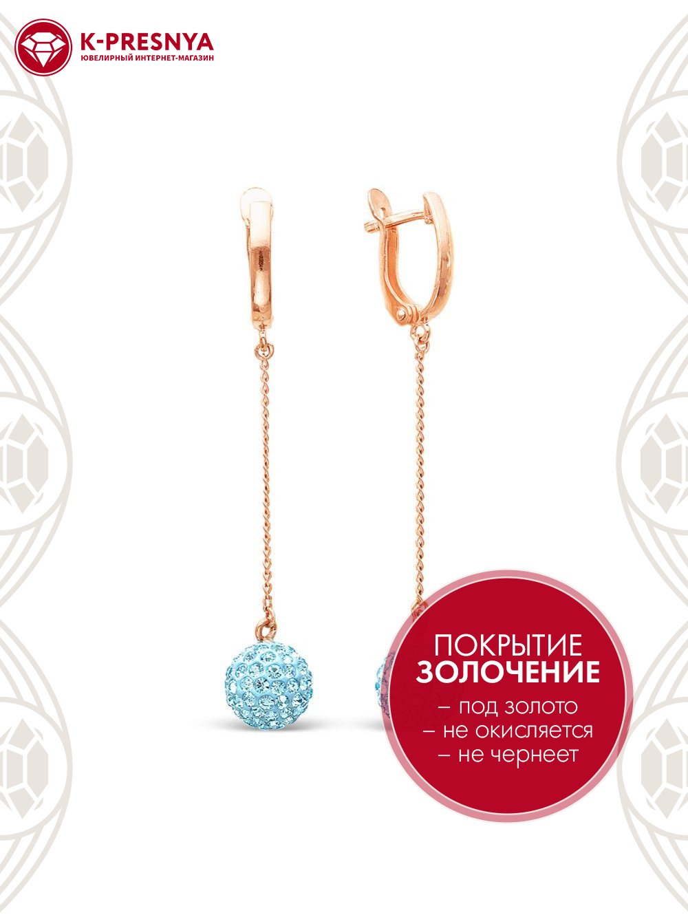 Серьги бижутерия, покрытие - золочение, вставка - стекло ювелирное