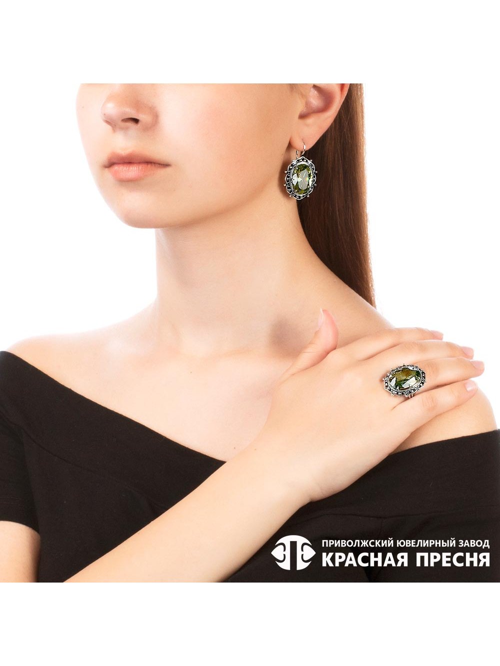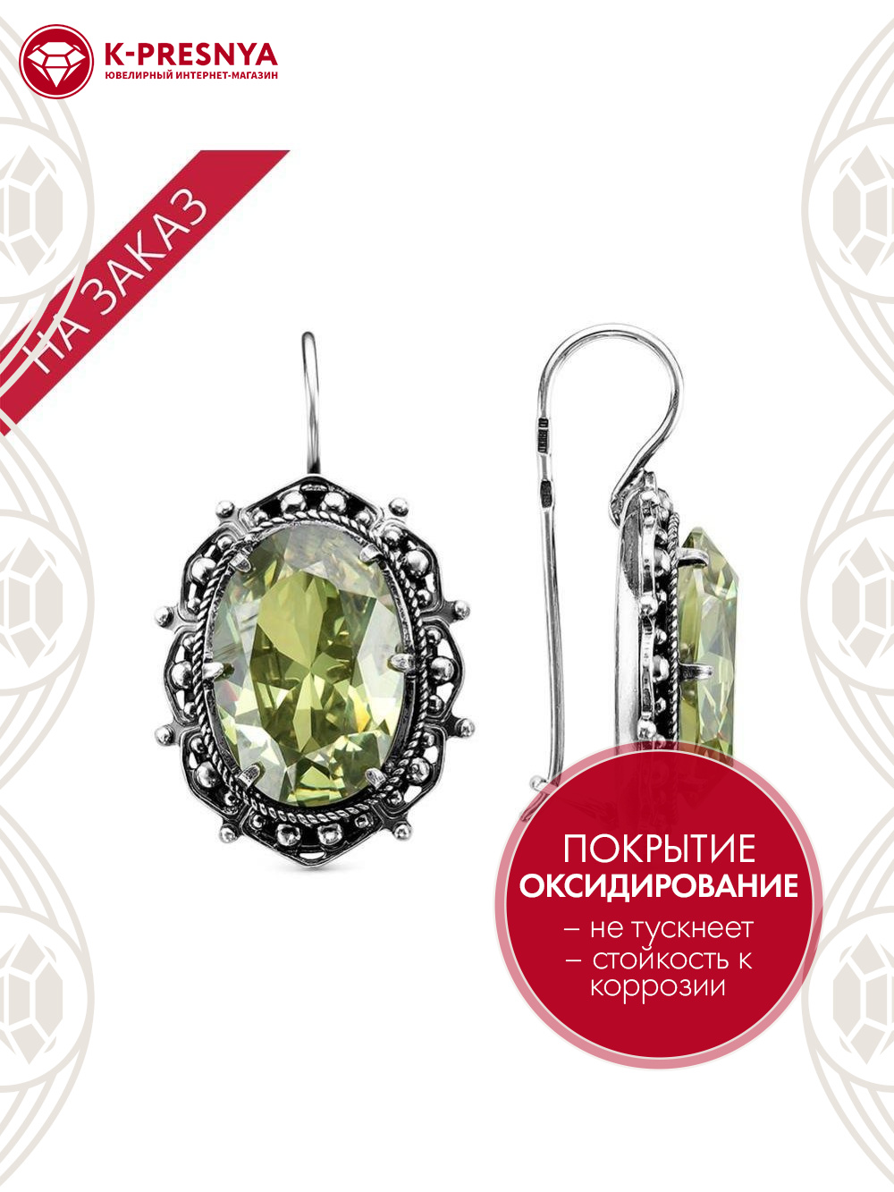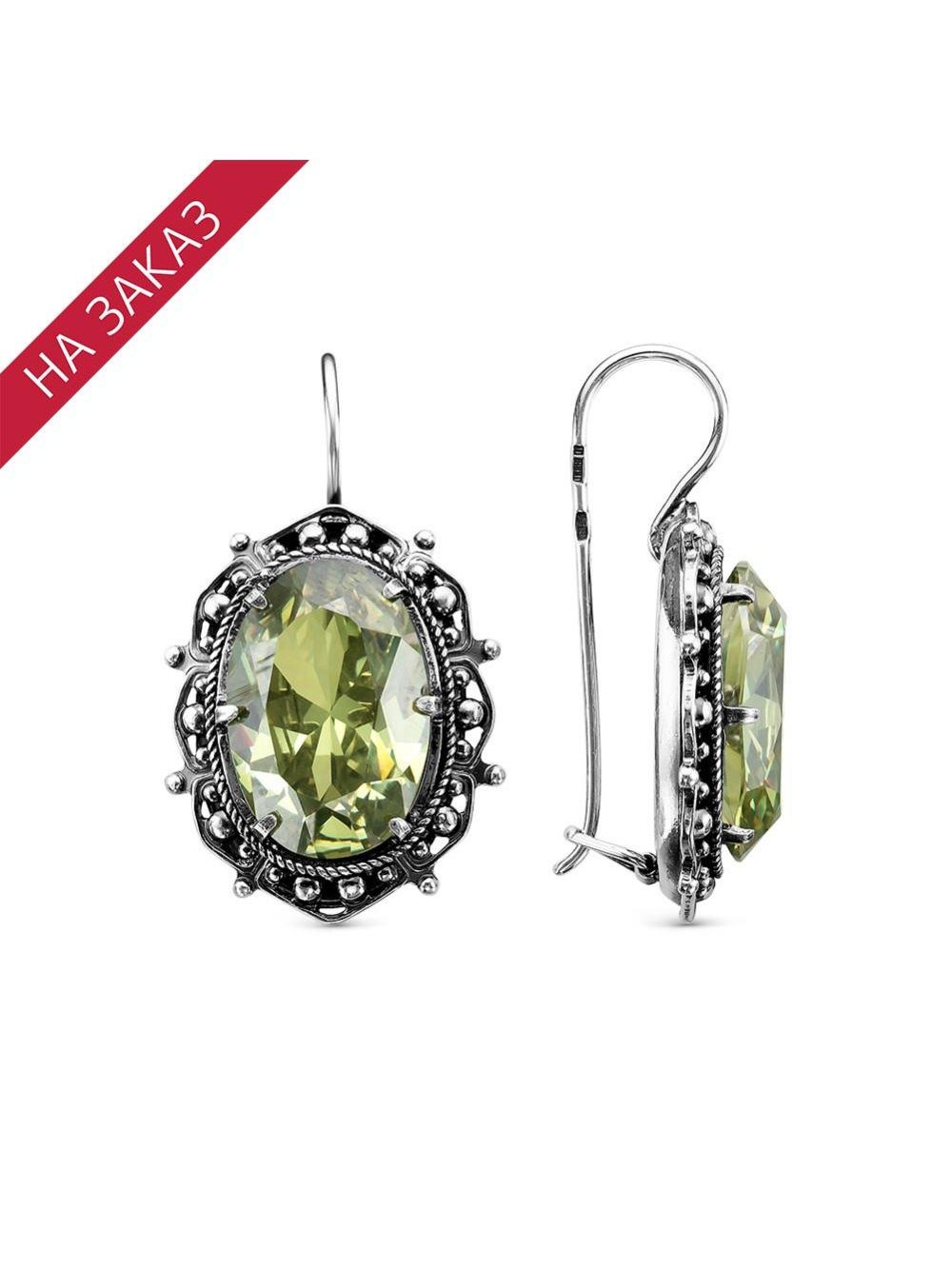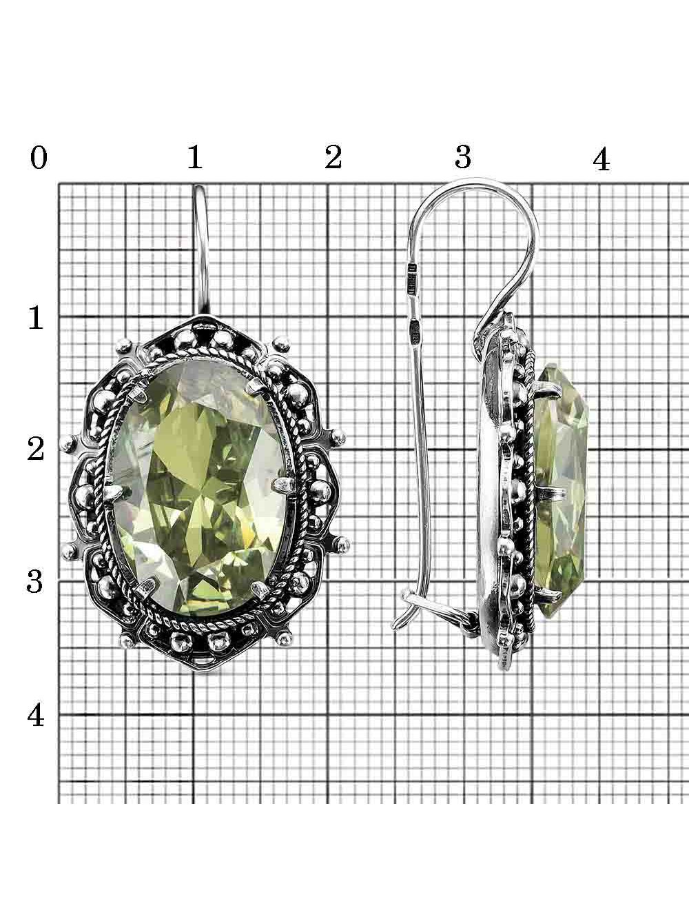 Серьги серебро 925 пробы, покрытие - оксидирование, вставка - фианит собственной огранки (недрагоценный камень)