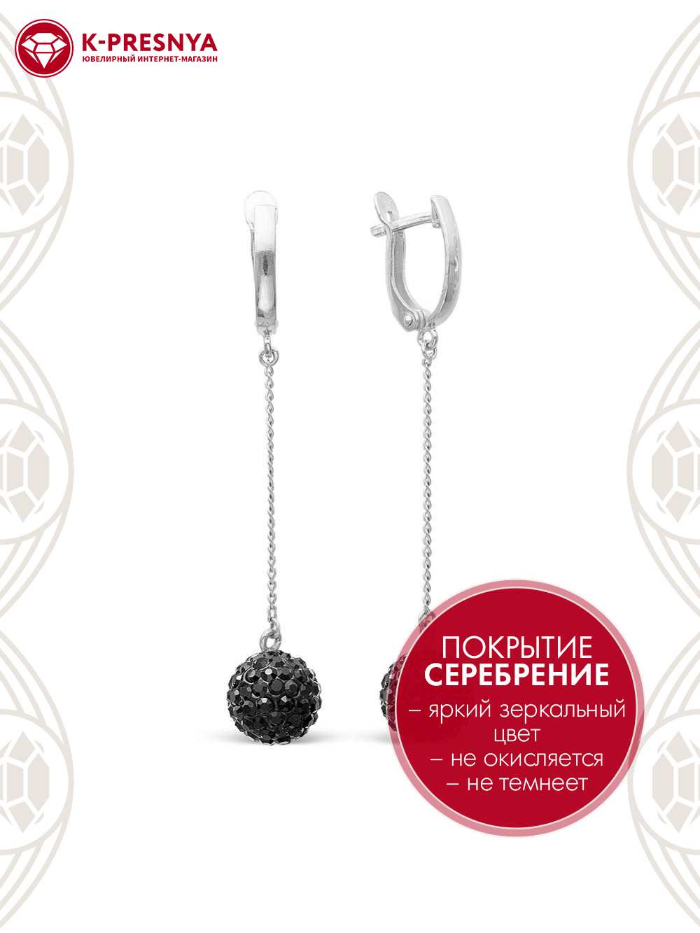 Серьги бижутерия, покрытие - серебрение, вставка - стекло ювелирное