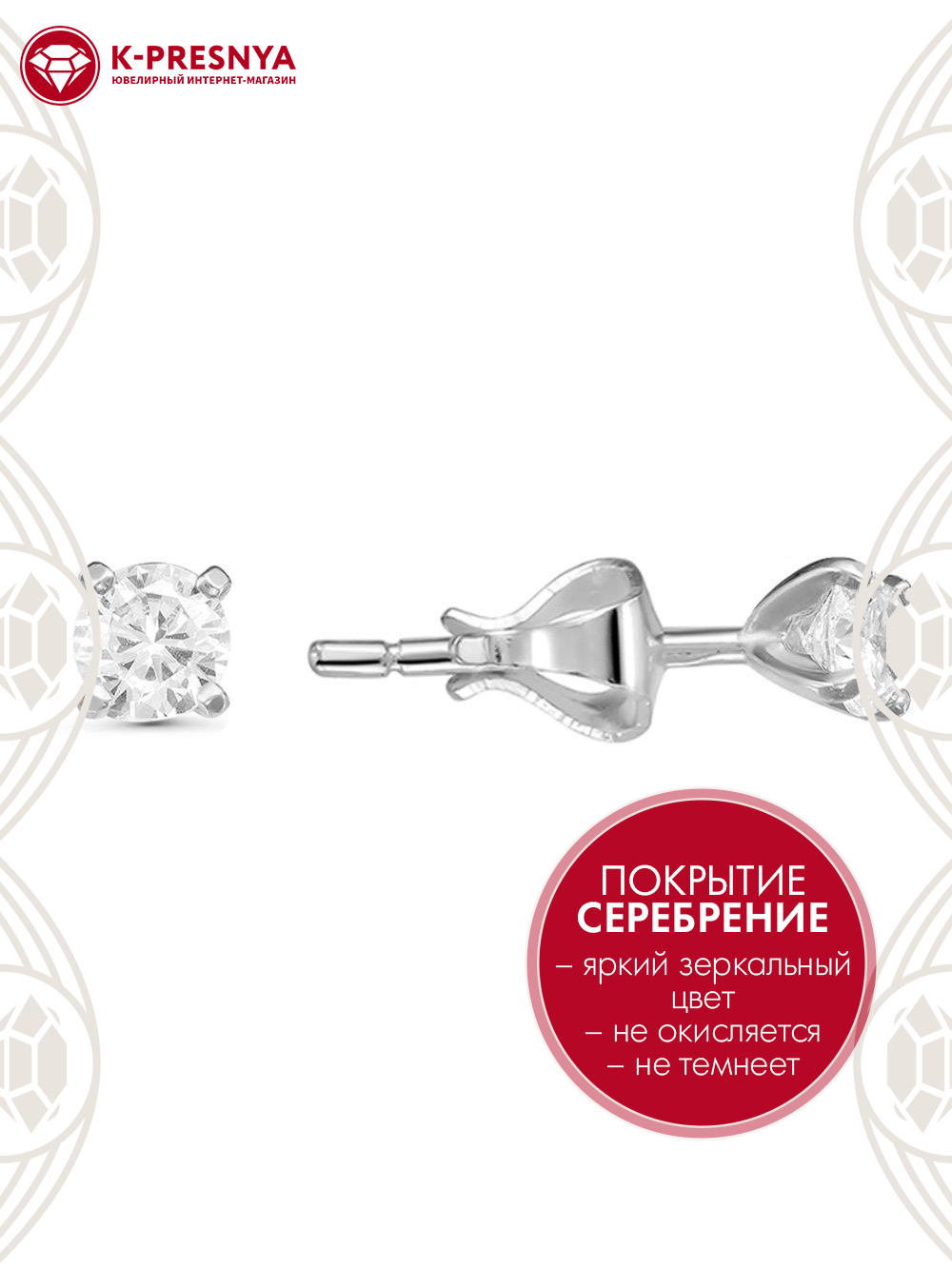 Серьги бижутерия, покрытие - серебрение, вставка - фианит (недрагоценный камень)