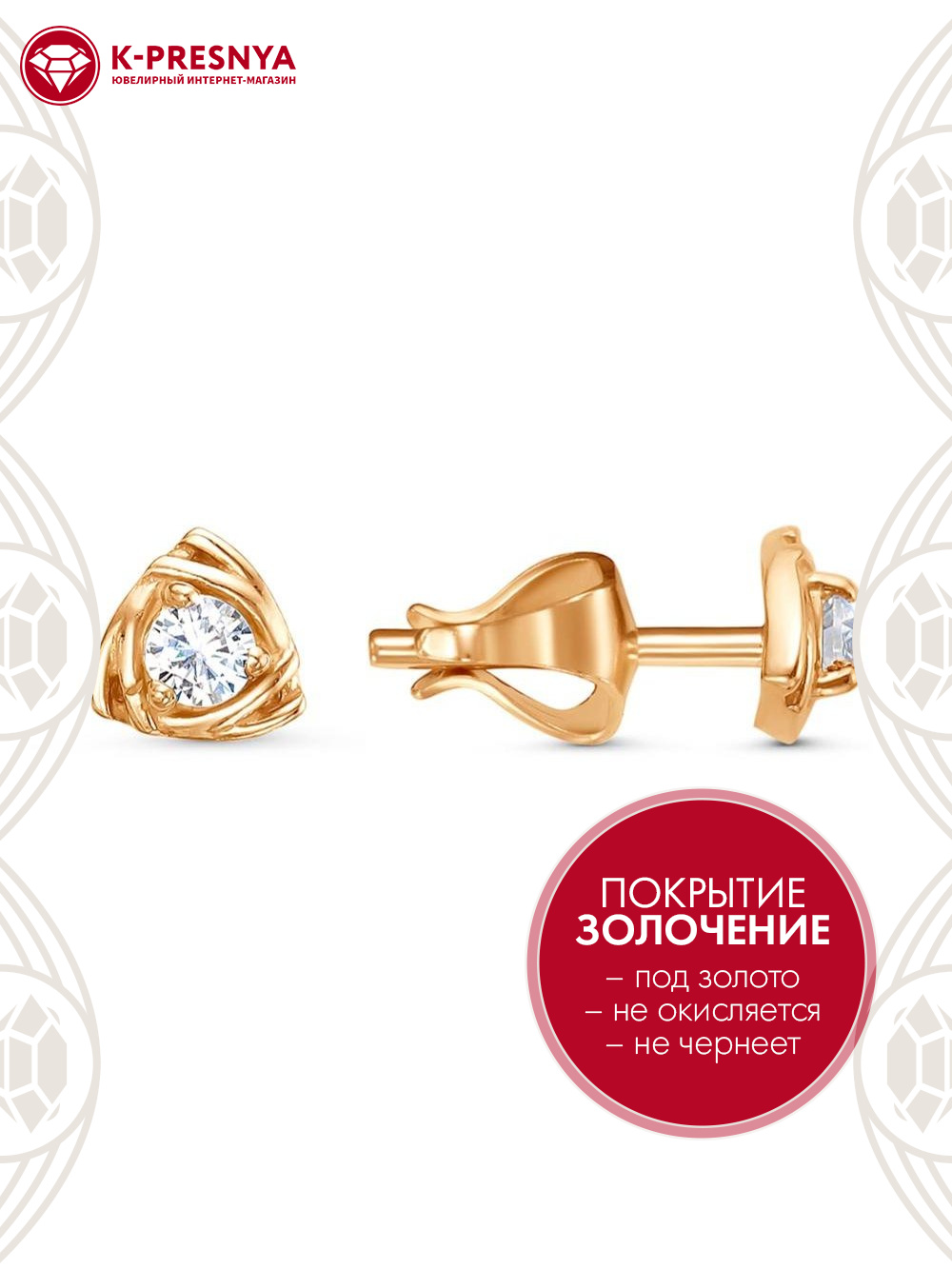 Серьги серебро 925 пробы, покрытие - золочение, вставка - фианит (недрагоценный камень)
