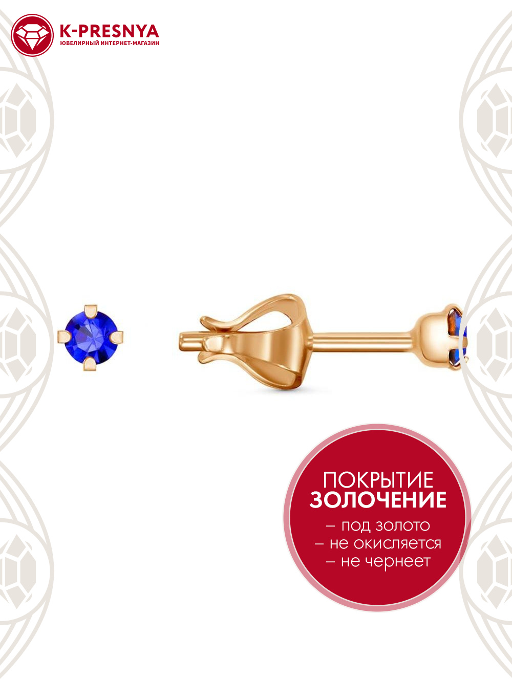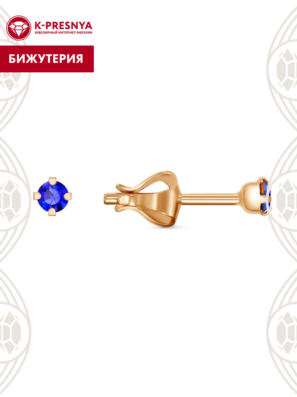 Серьги бижутерия, покрытие - золочение, вставка - стекло ювелирное preciosa