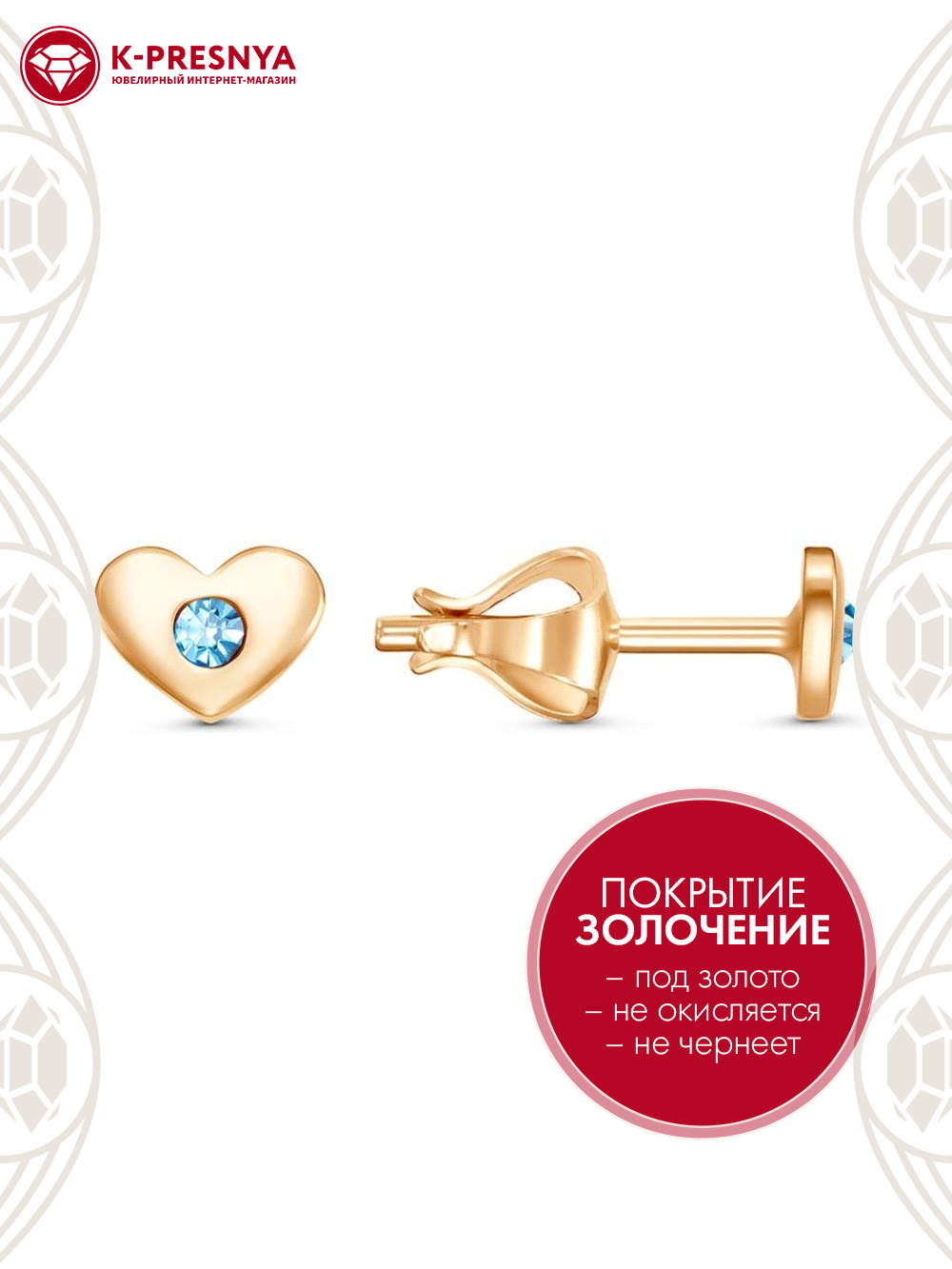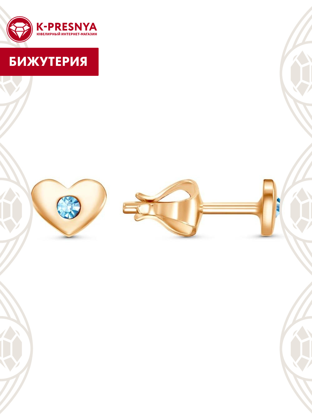 Серьги бижутерия, покрытие - золочение, вставка - стекло ювелирное preciosa