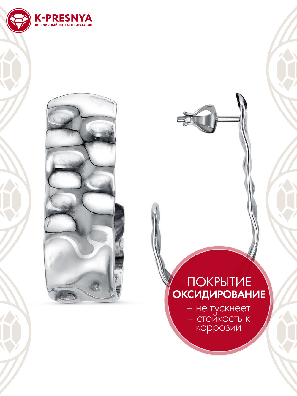 Серьги серебро 925 пробы, покрытие - оксидирование, без вставок