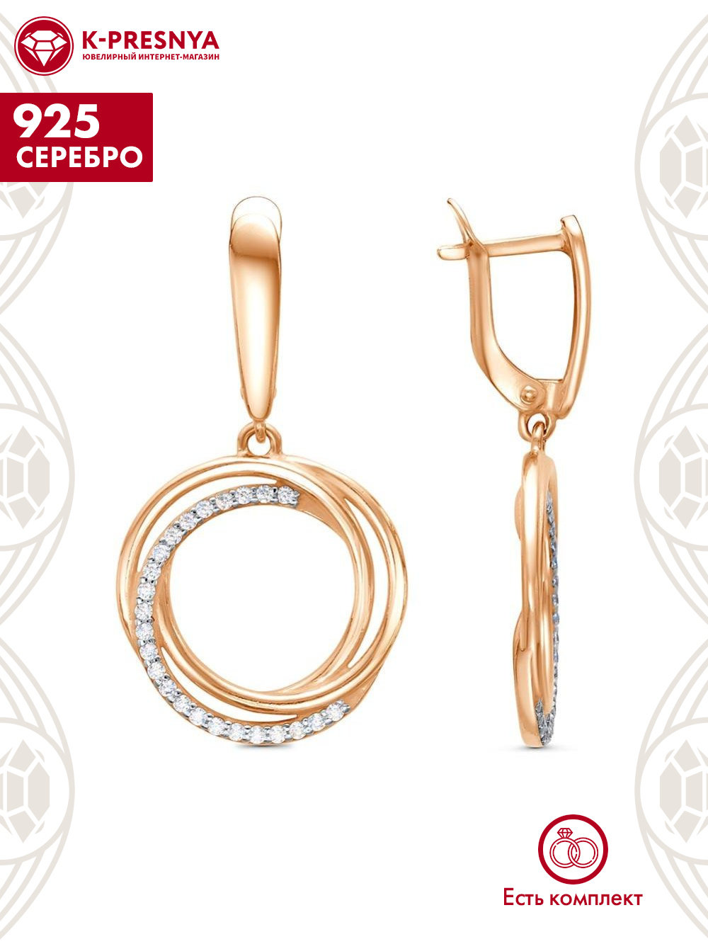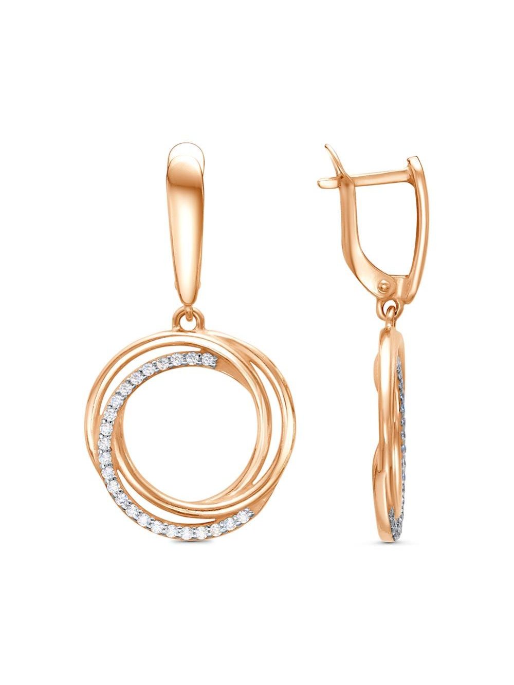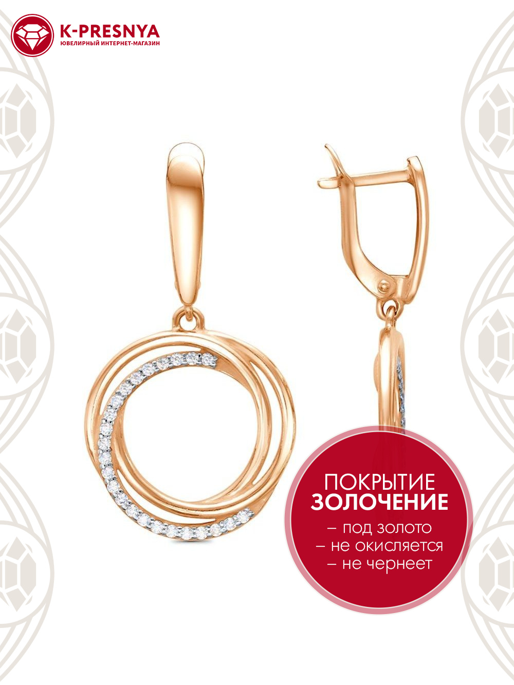 Серьги серебро 925 пробы, покрытие - золочение, выборочное родирование, вставка - фианит (недрагоценный камень)