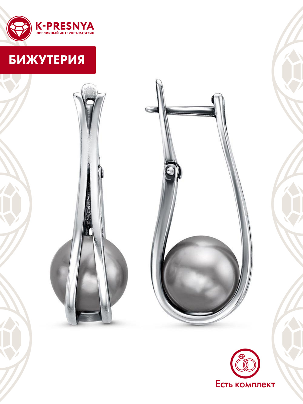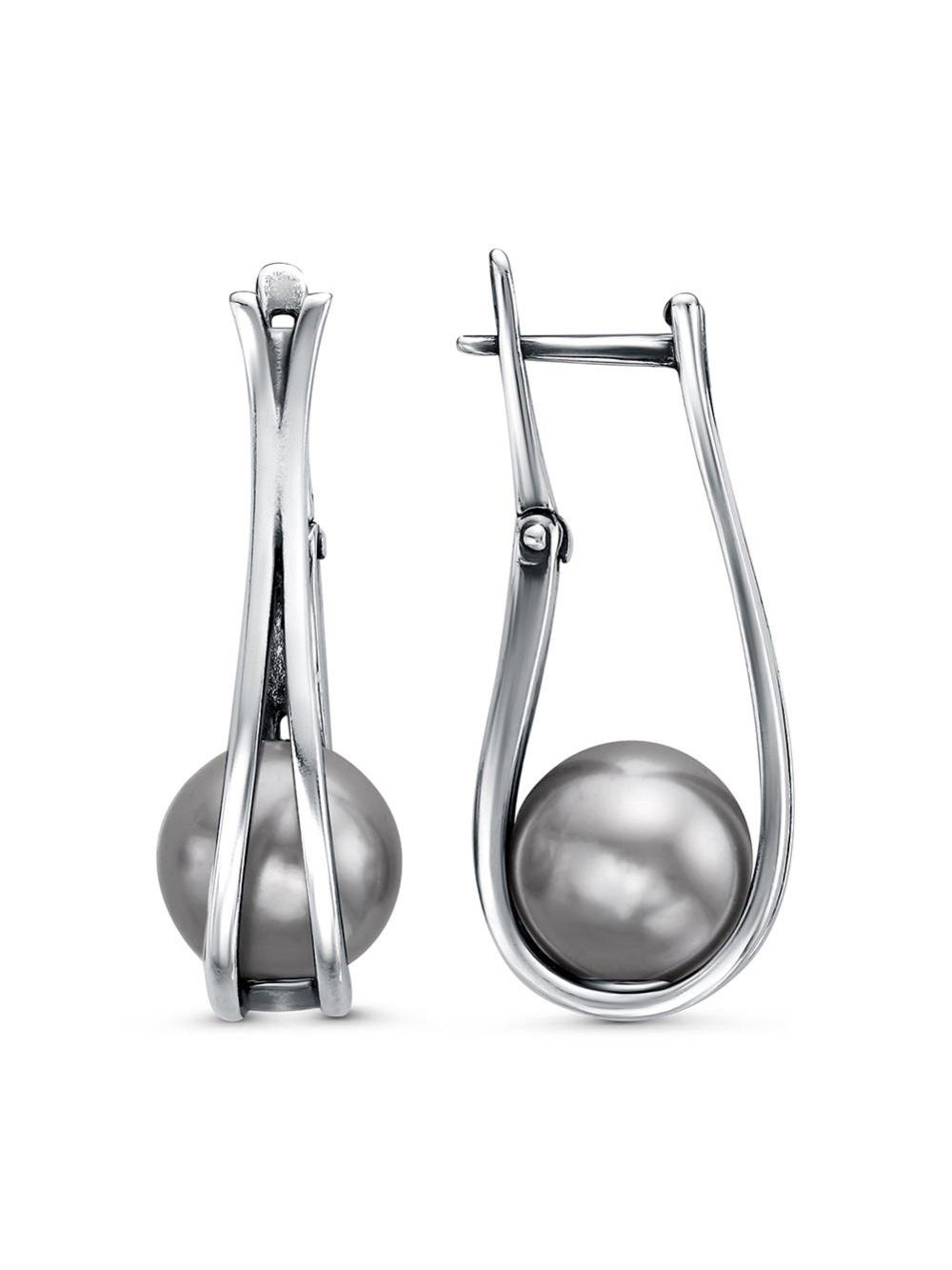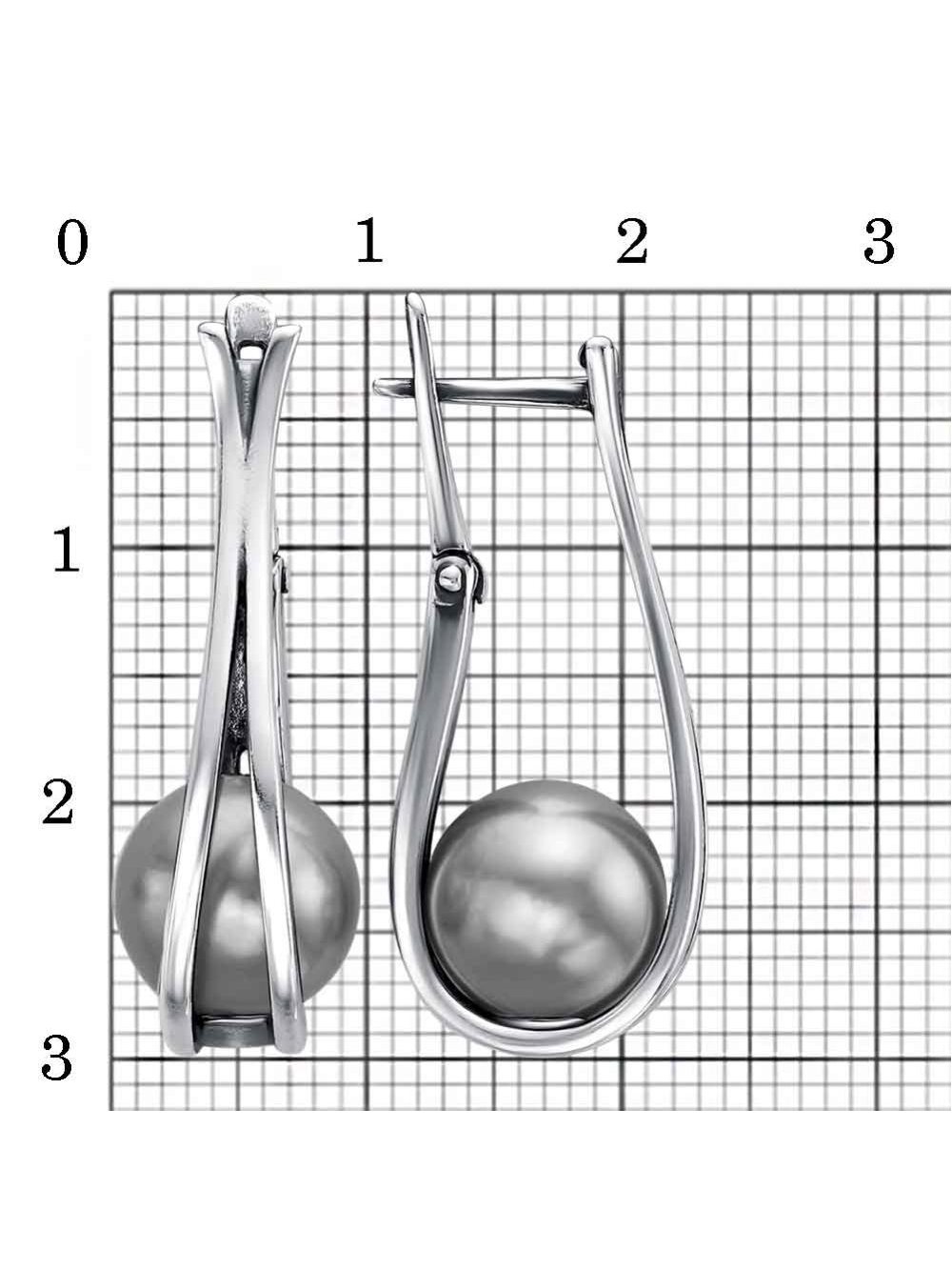 Серьги бижутерия, покрытие - серебрение с оксидированием, вставка - имитация жемчуга