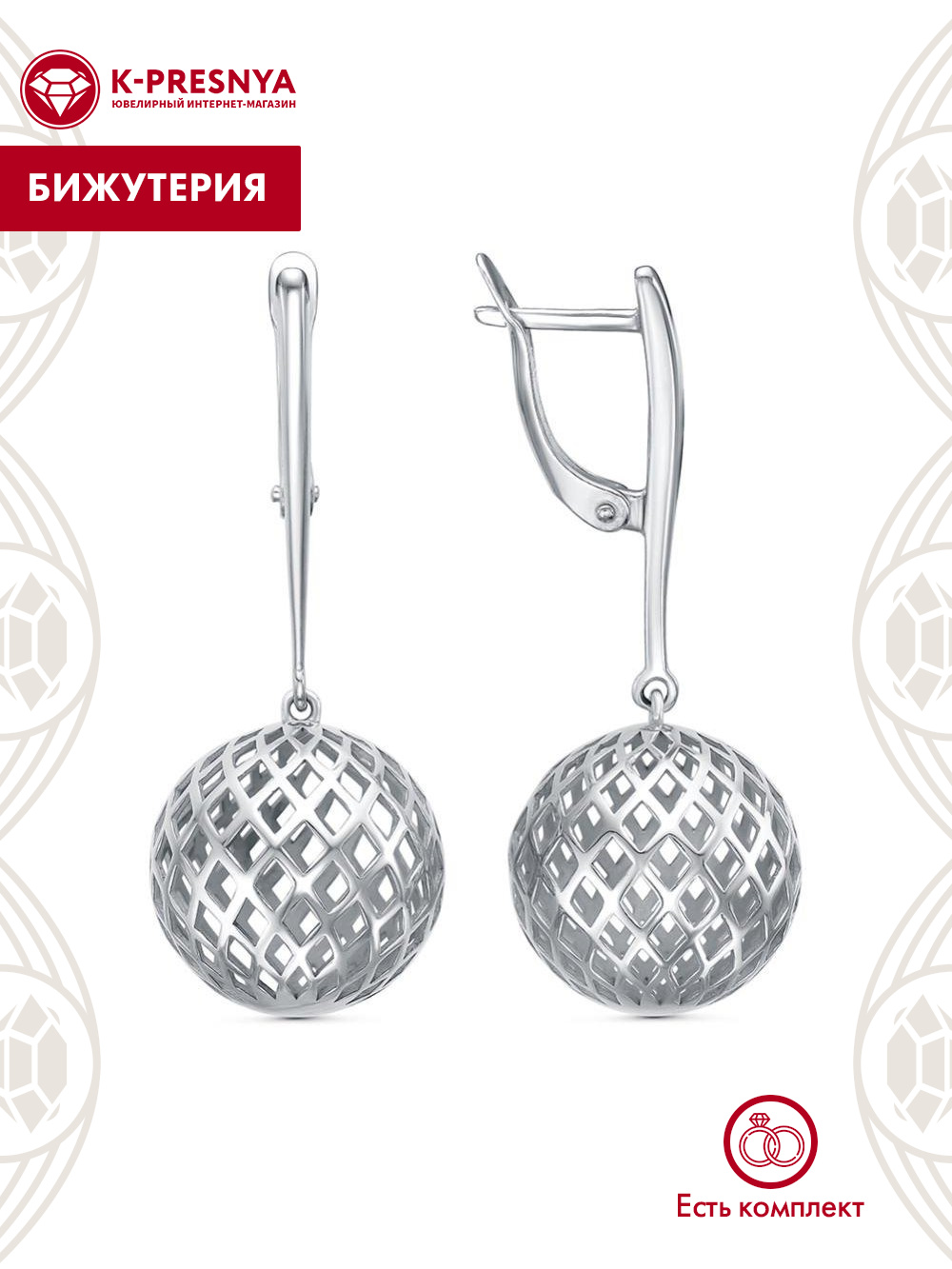 Серьги бижутерия, покрытие - серебрение, без вставок