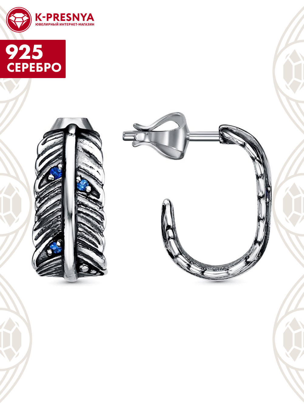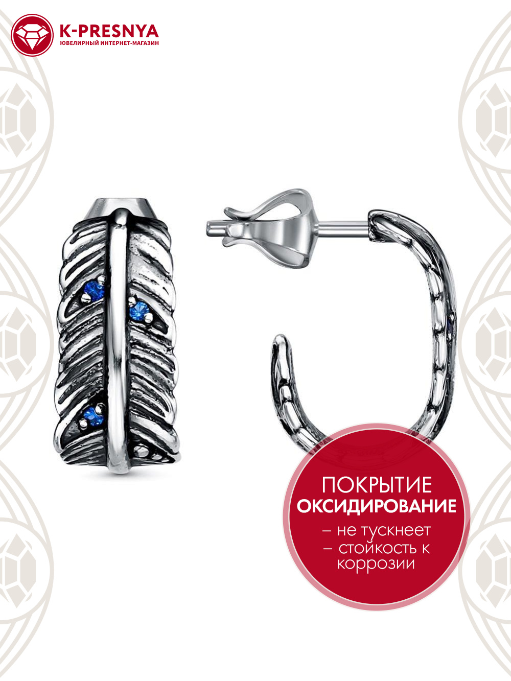 Серьги серебро 925 пробы, покрытие - оксидирование, вставка - искусственная шпинель