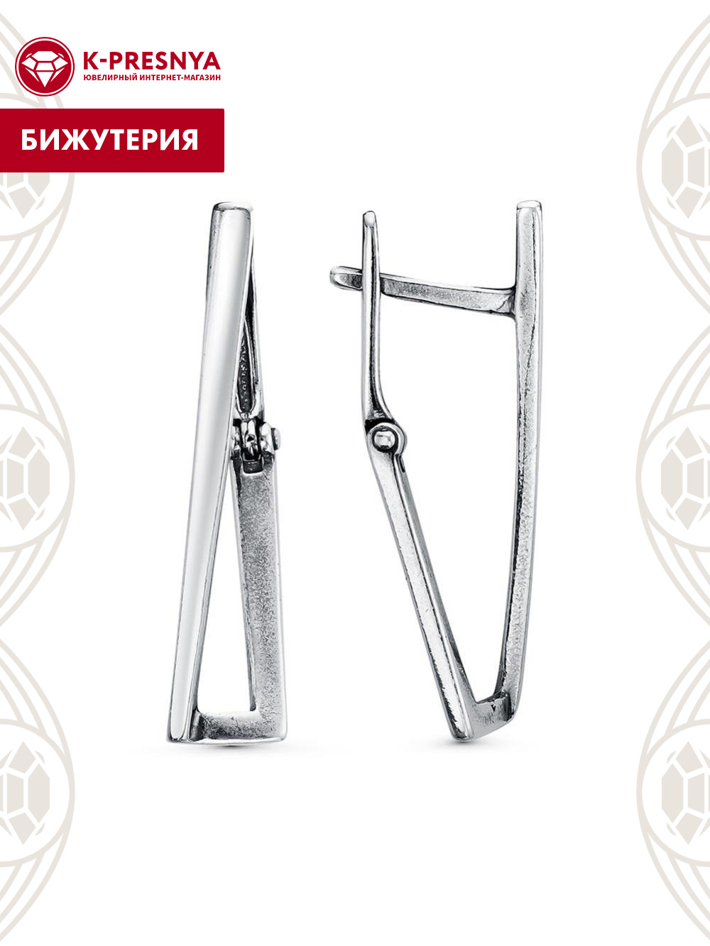 Серьги бижутерия, покрытие - серебрение с оксидированием, без вставок