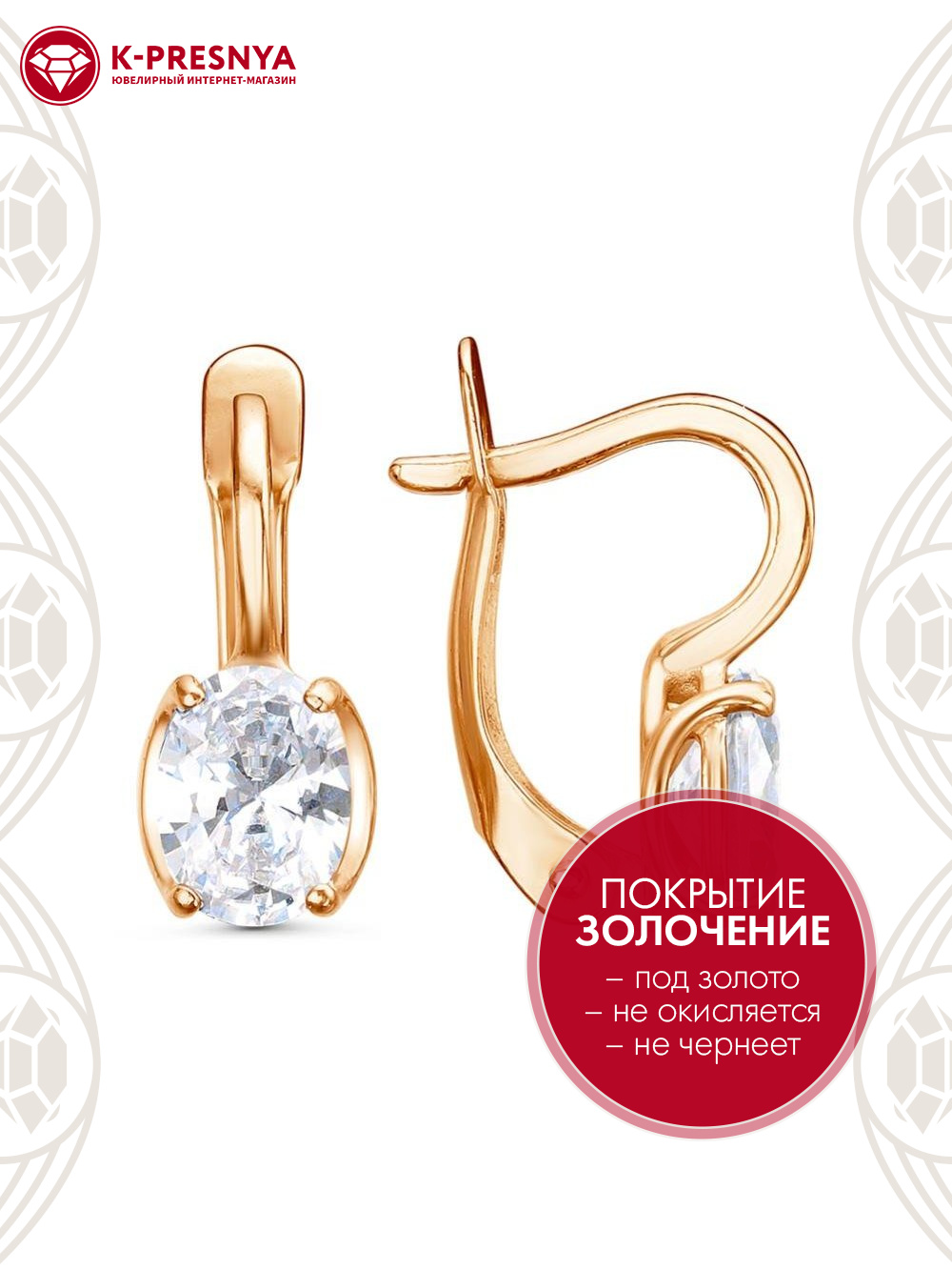 Серьги бижутерия, покрытие - золочение, вставка - фианит (недрагоценный камень)