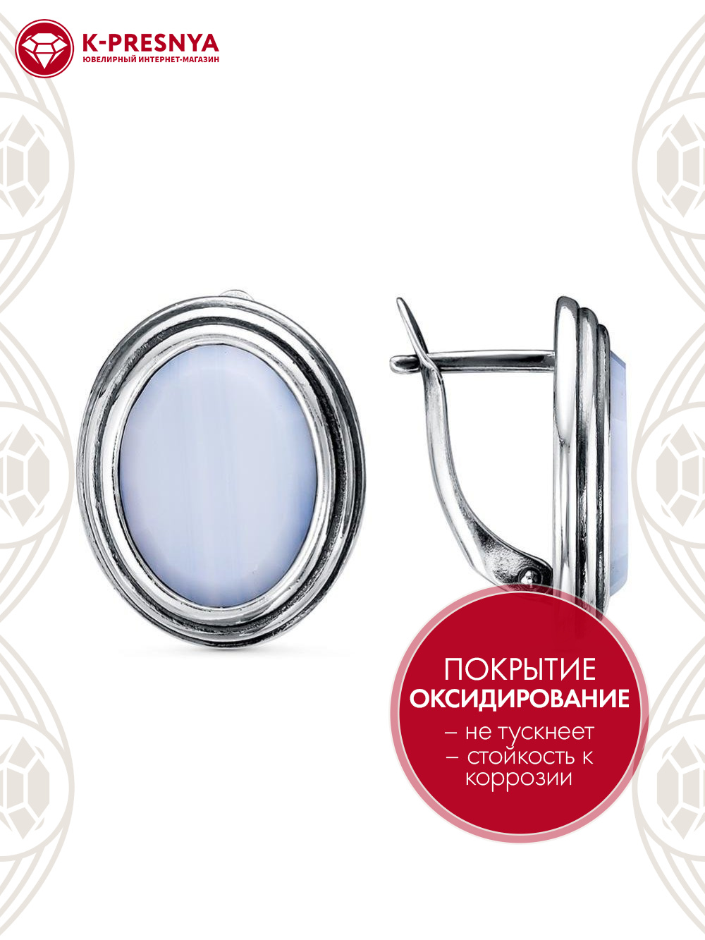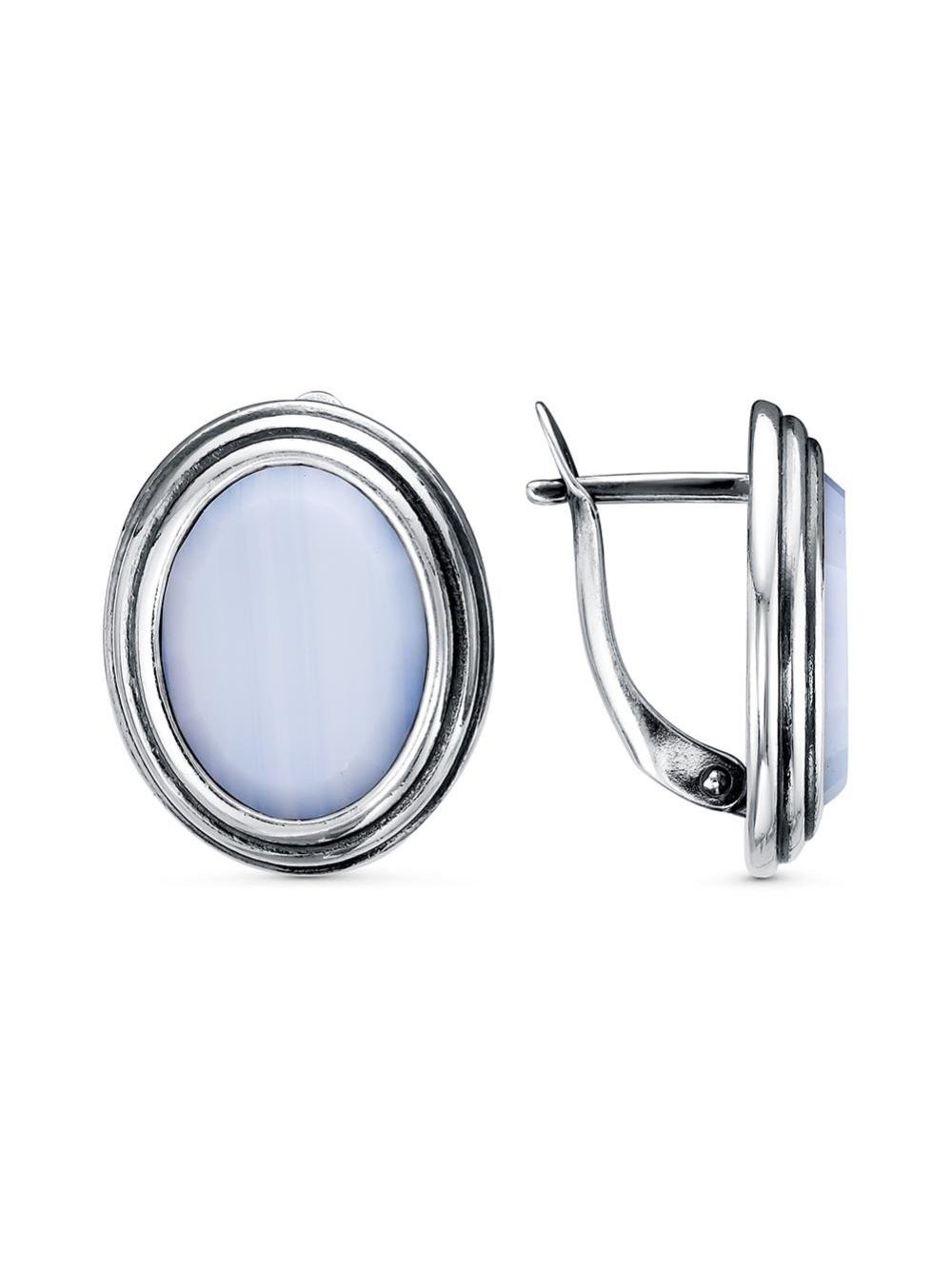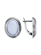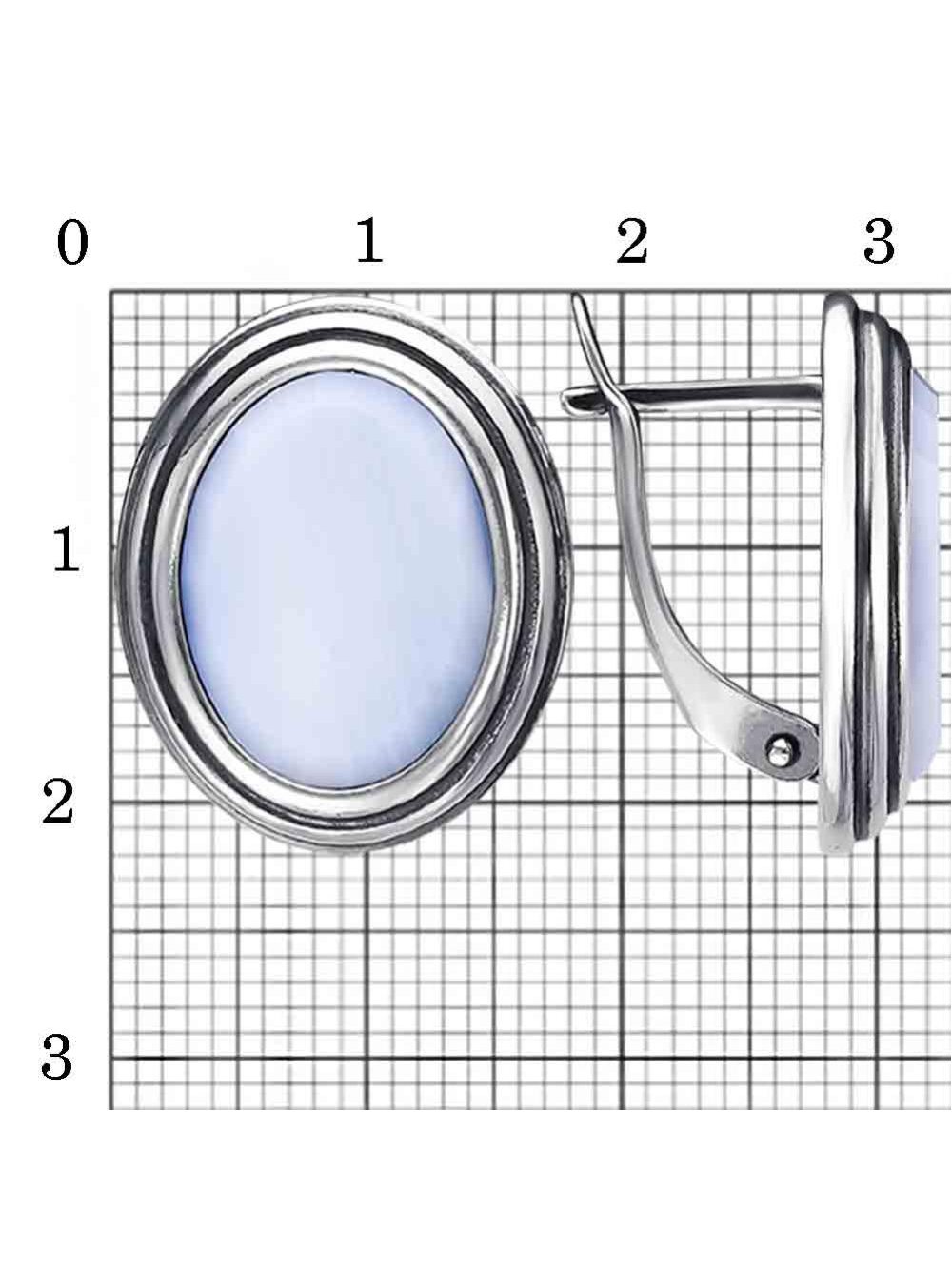 Серьги серебро 925 пробы, покрытие - оксидирование, вставка - искусственный агат белый