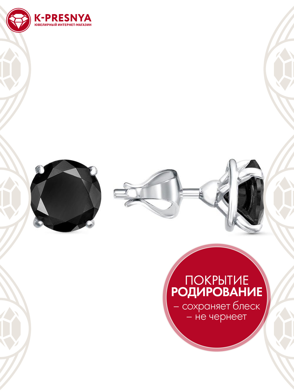 Серьги серебро 925 пробы, покрытие - родирование, вставка - фианит (недрагоценный камень)