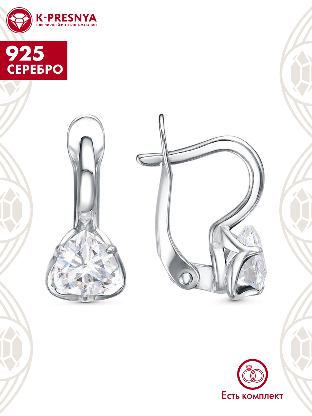 Серьги серебро 925 пробы, покрытие - родирование, вставка - фианит (недрагоценный камень)