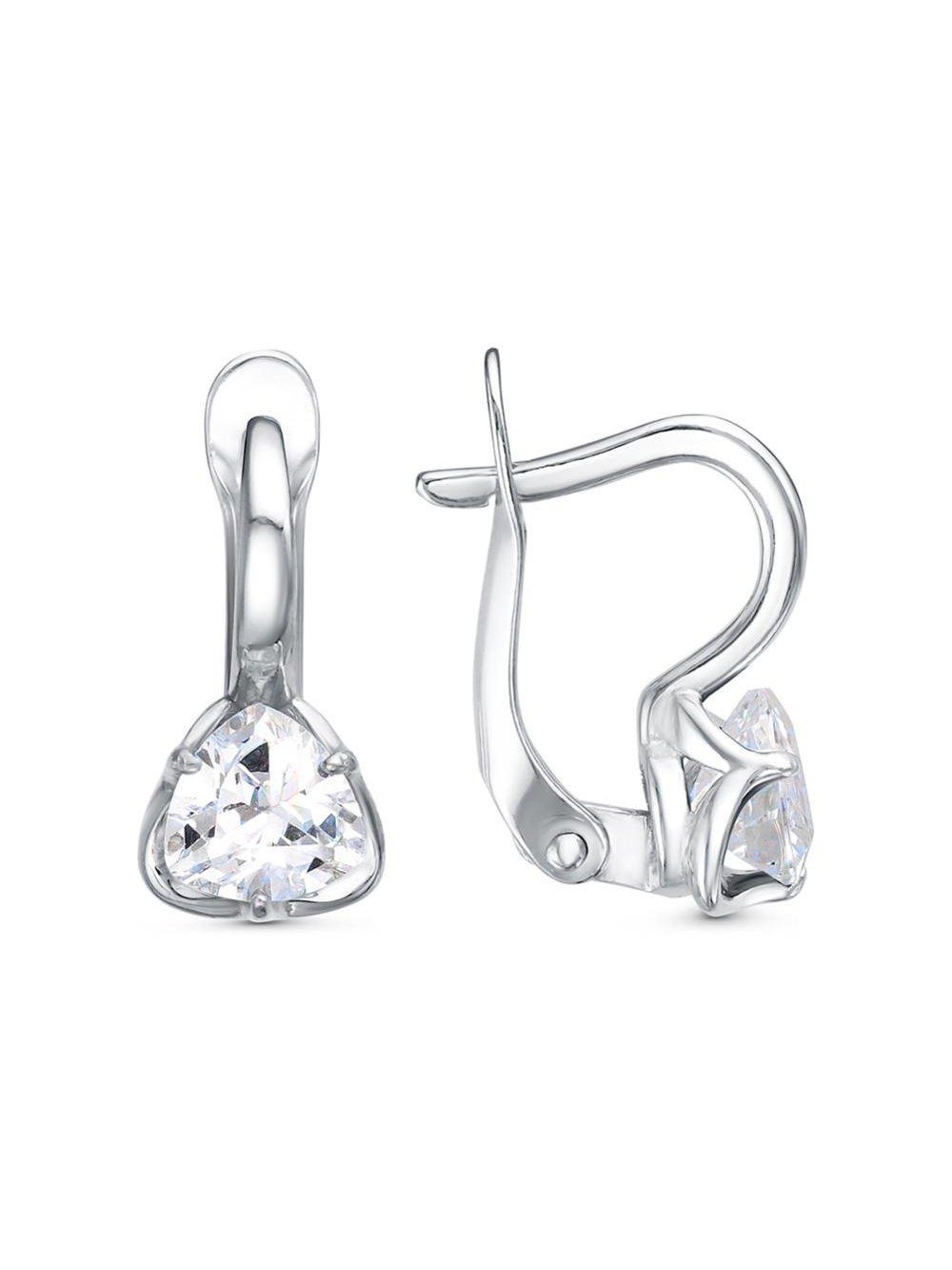 Серьги бижутерия, покрытие - серебрение, вставка - фианит (недрагоценный камень)