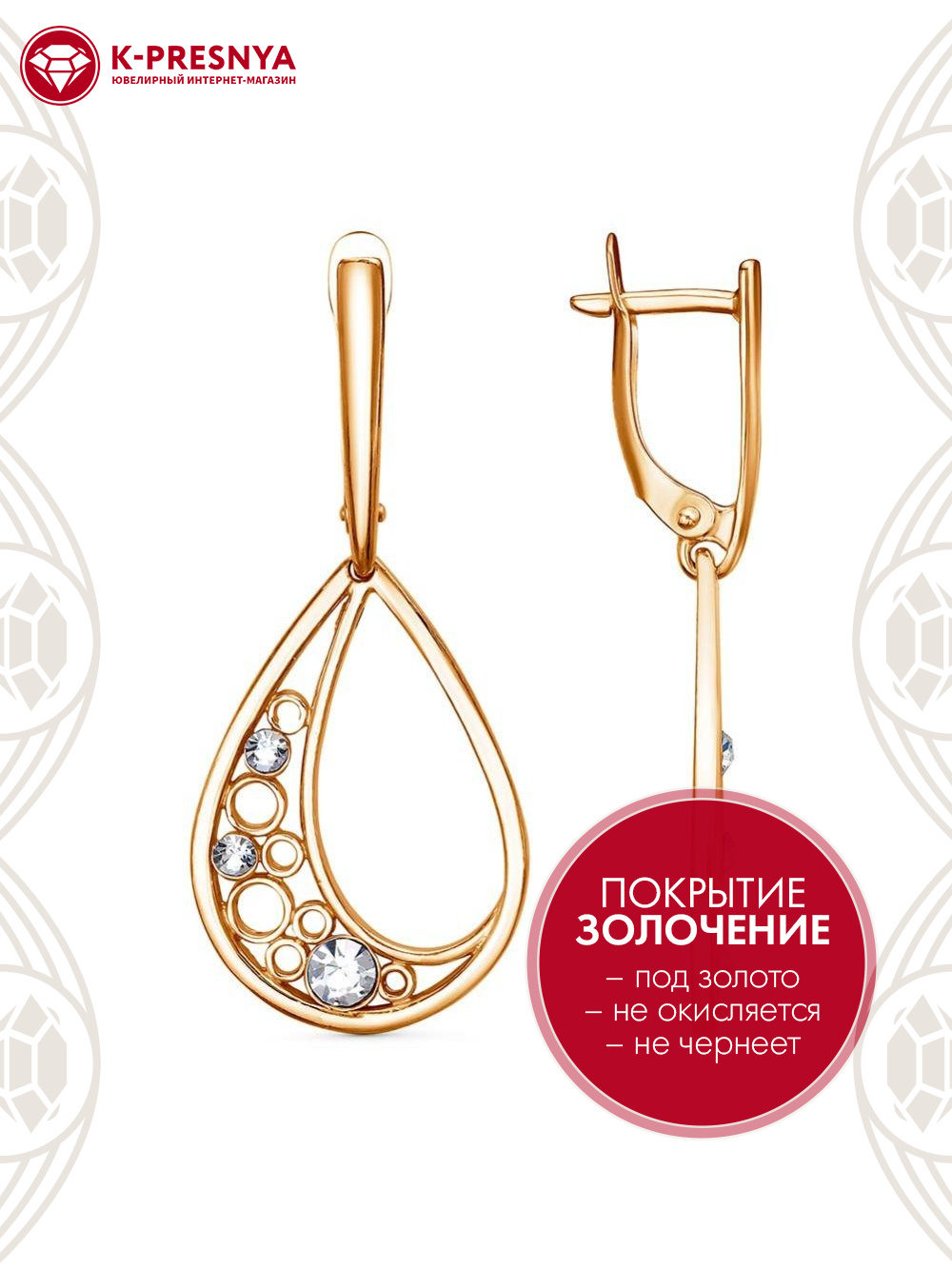 Серьги бижутерия, покрытие - золочение, вставка - стекло ювелирное preciosa