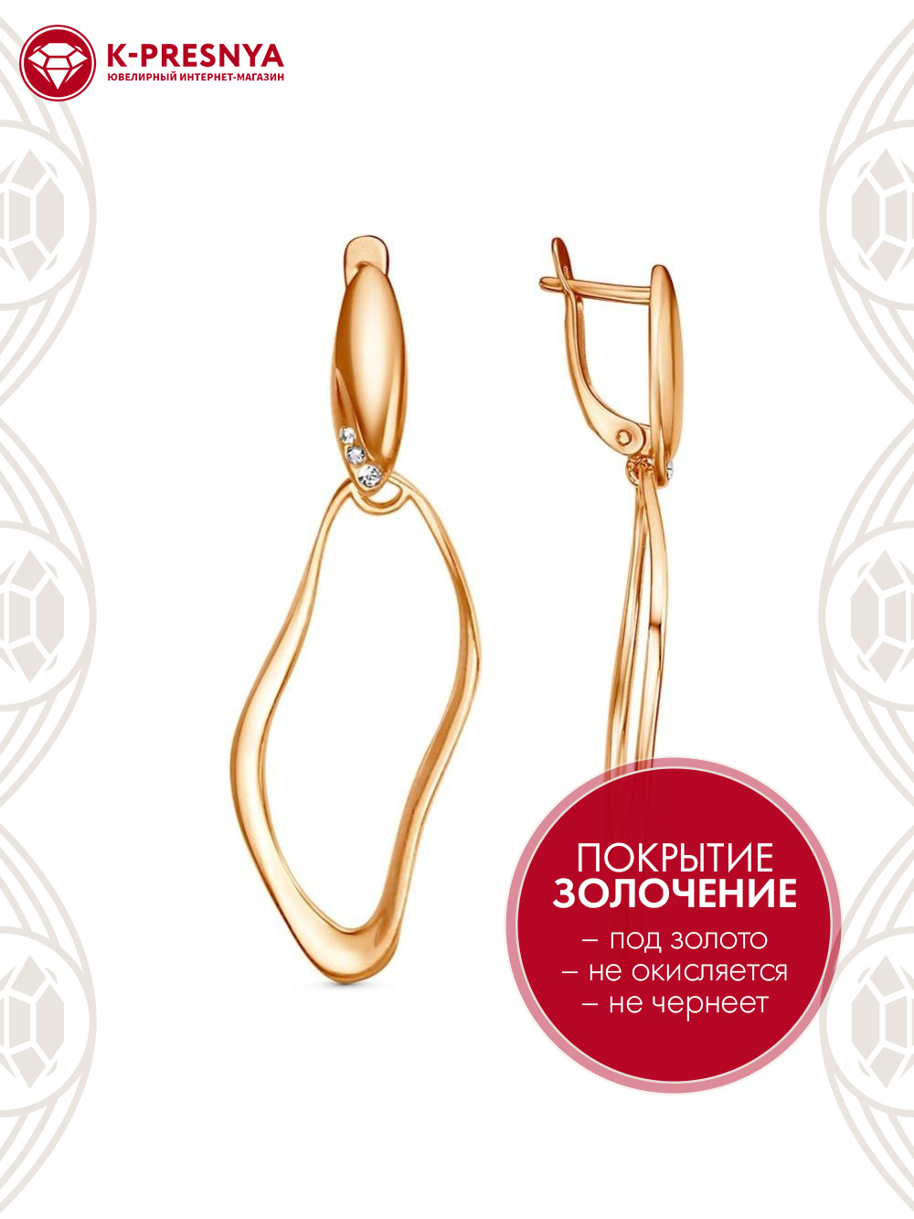 Серьги бижутерия, покрытие - золочение, вставка - стекло ювелирное preciosa