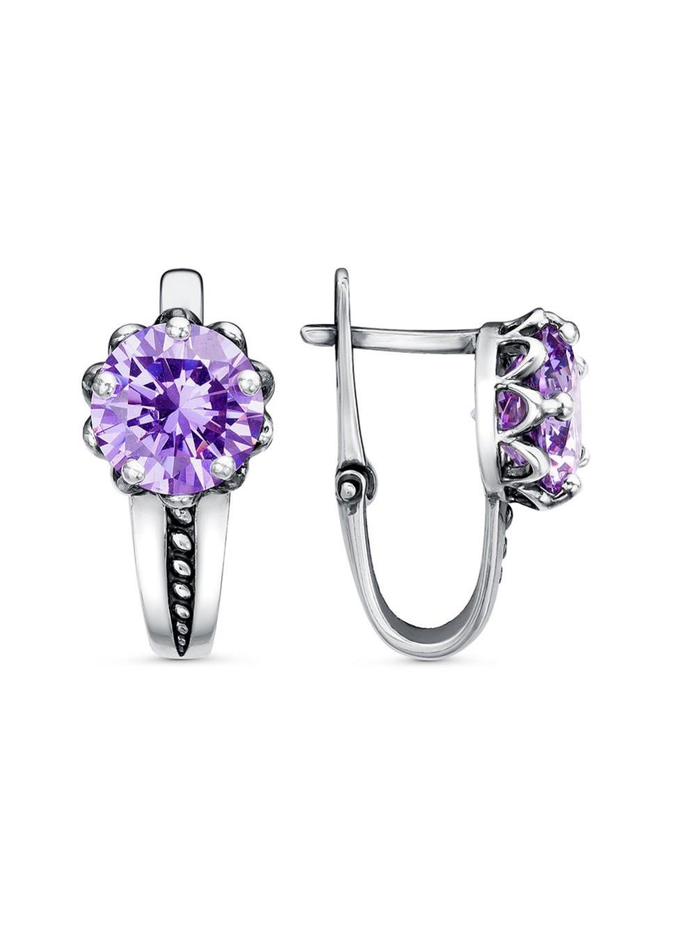 Серьги бижутерия, покрытие - серебрение с оксидированием, вставка - фианит (недрагоценный камень)