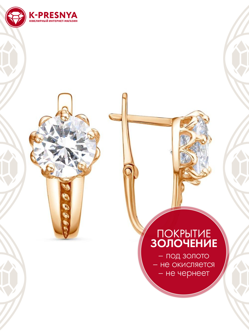 Серьги бижутерия, покрытие - золочение, вставка - фианит (недрагоценный камень)