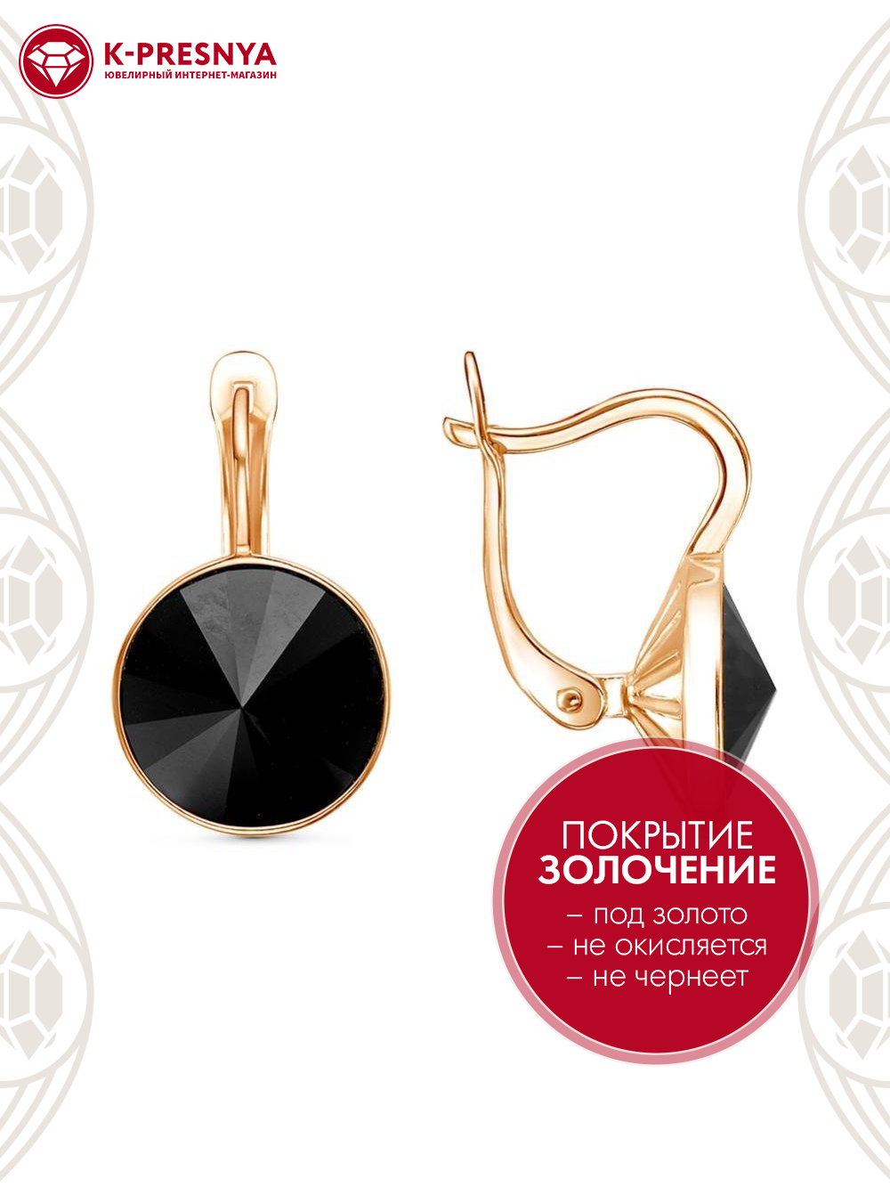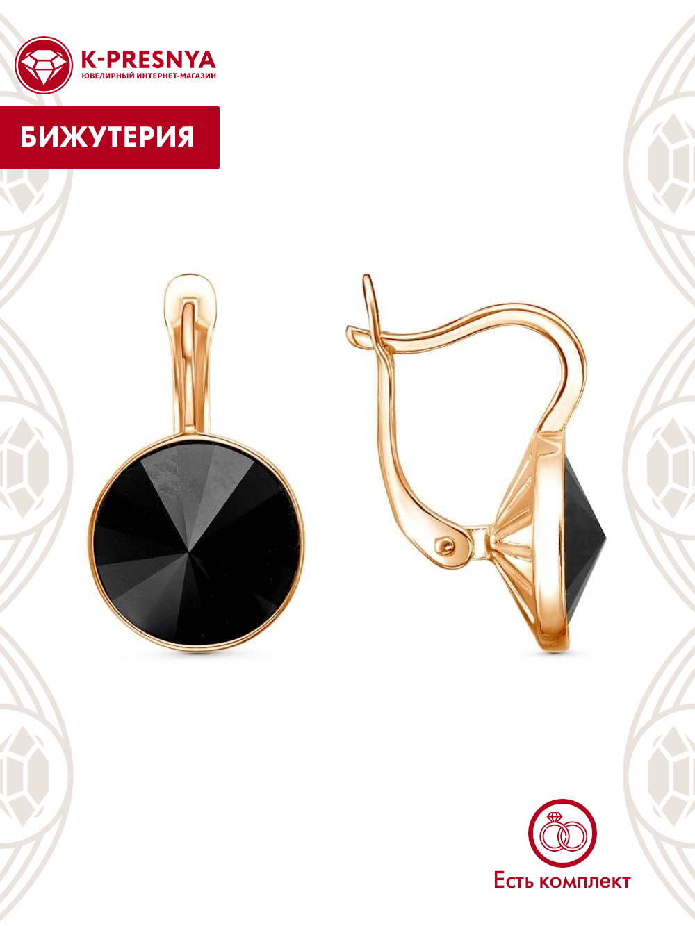 Серьги бижутерия, покрытие - золочение, вставка - стекло ювелирное preciosa