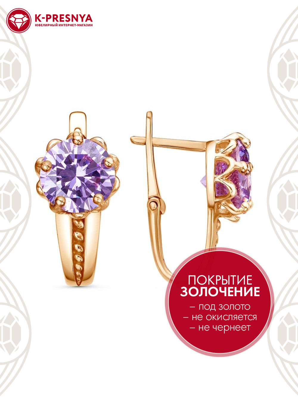 Серьги бижутерия, покрытие - золочение, вставка - фианит (недрагоценный камень)