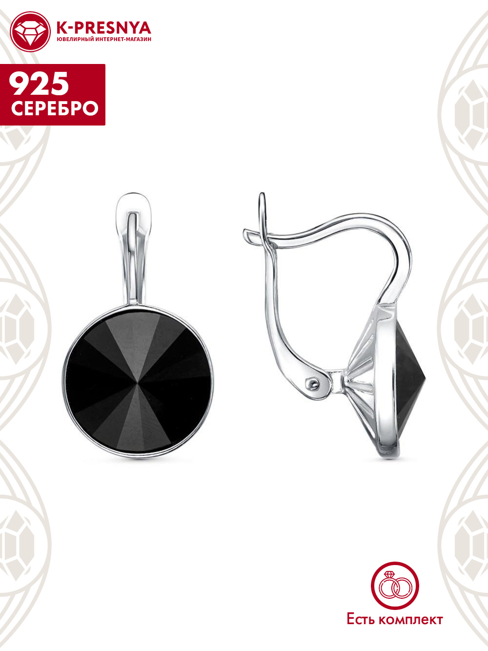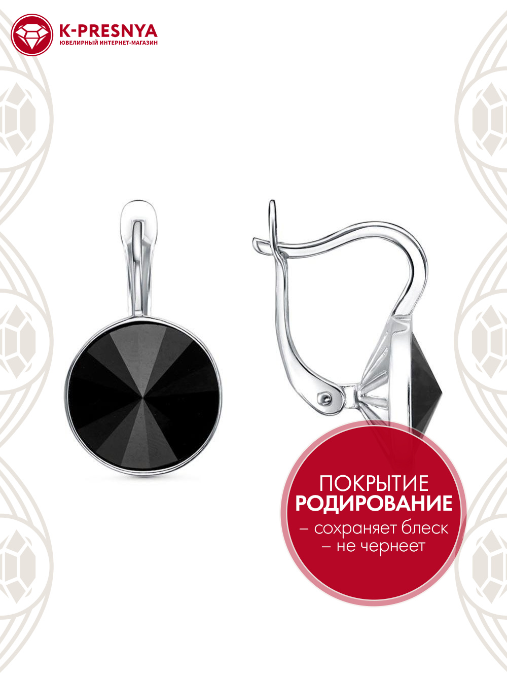 Серьги серебро 925 пробы, покрытие - родирование, вставка - стекло ювелирное preciosa