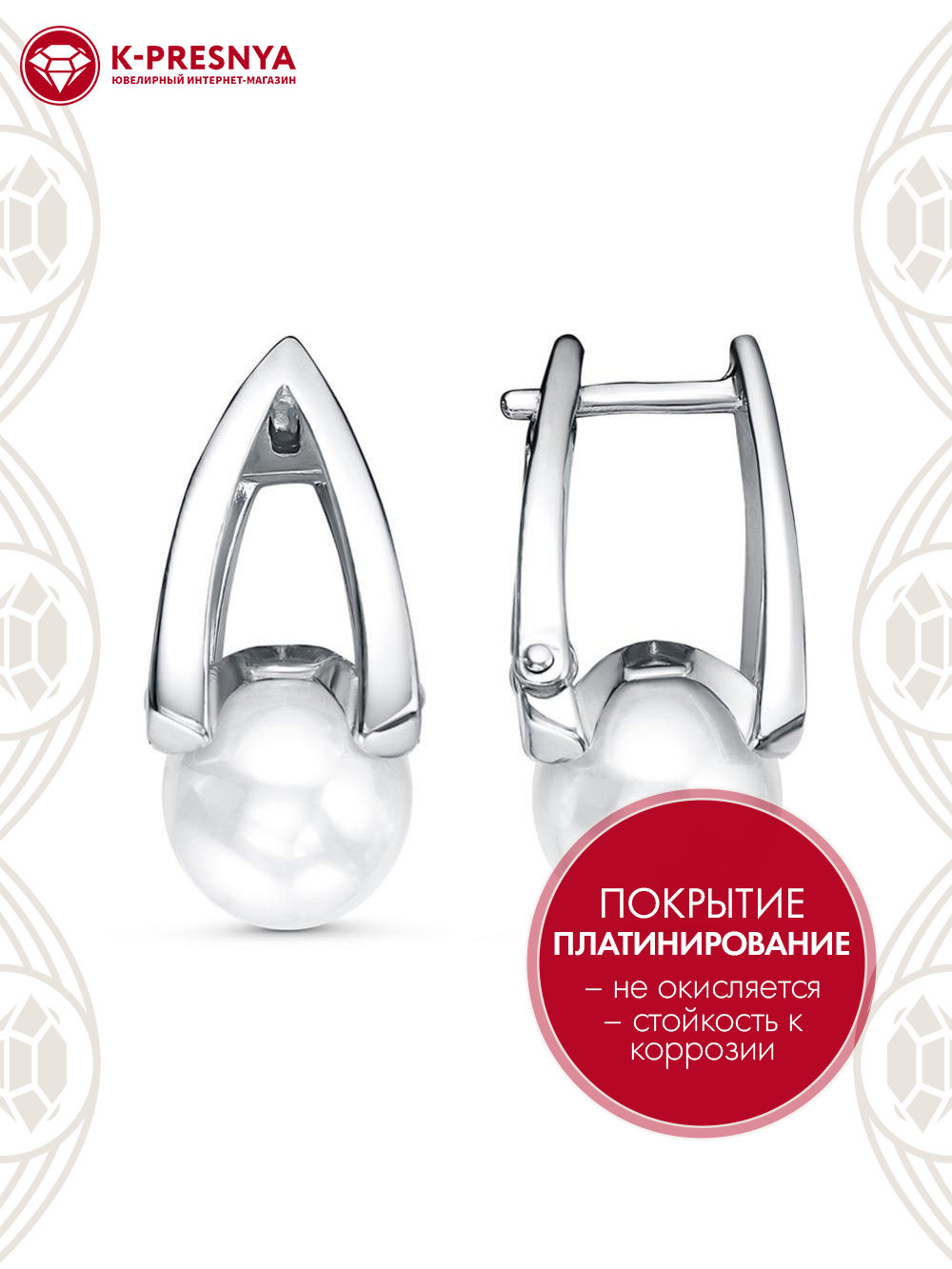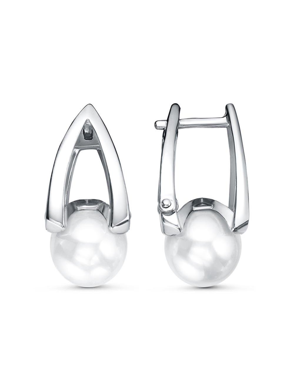 Серьги бижутерия, покрытие - платинирование, вставка - имитация жемчуга