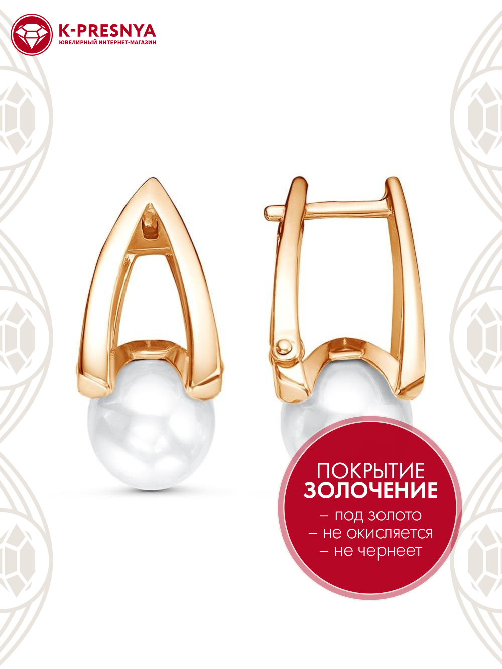 Серьги бижутерия, покрытие - золочение, вставка - имитация жемчуга