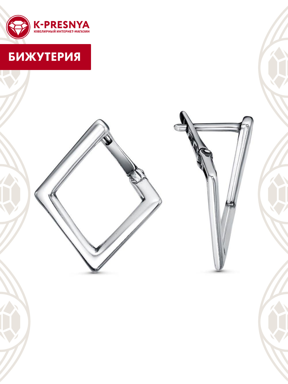 Серьги бижутерия, покрытие - серебрение с оксидированием, без вставок