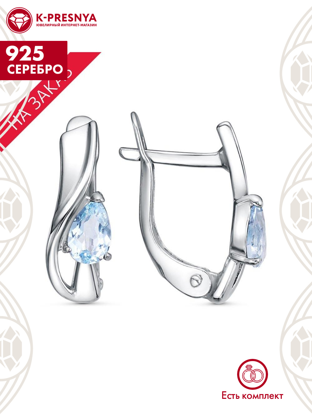 Серьги серебро 925 пробы, покрытие - родирование, вставка - голубой топаз (полудрагоценный камень)