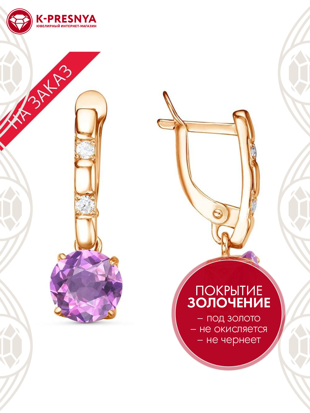 Серьги серебро 925 пробы, покрытие - золочение, вставка - аметист (полудрагоценный камень), фианит (недрагоценный камень)