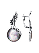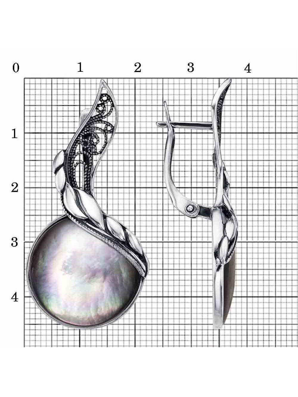 Серьги бижутерия, покрытие - серебрение с оксидированием, вставка - перламутр