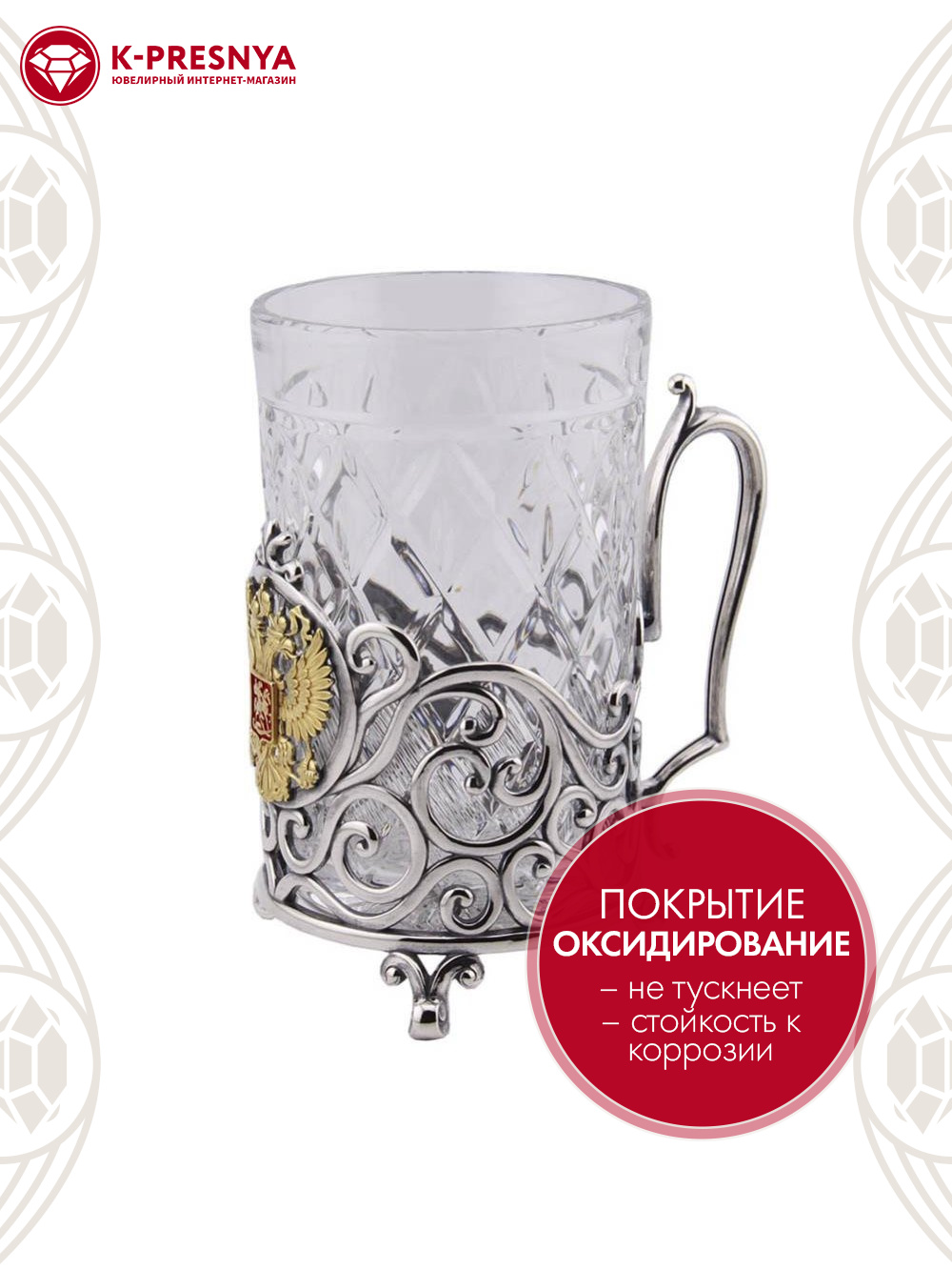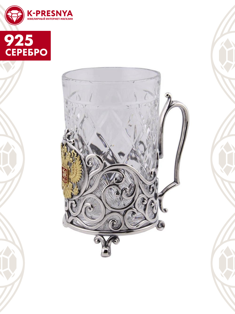 Серебряный подстаканник «Герб России» с эмалью