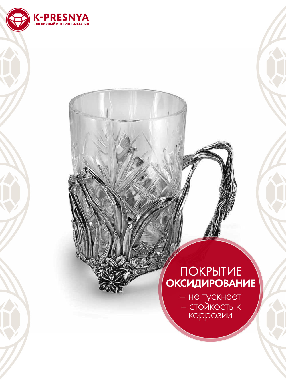 Подстаканник "цапля" серебро 925 пробы, покрытие - оксидирование, без вставок