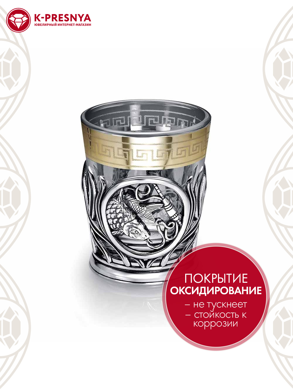 Стопка- это не просто предмет сервировки стола. В некотором роде это фамильная ценность, которая добавит изысканности на ваш стол, а также подчеркнёт Ваш безупречный вкус. Серебряная стопка «Рыбалка», объемом 50 мл, выполнена ювелирами Приволжского ювелирного завода «Красная Пресня» с любовью и мастерством. Она имеет непревзойденное художественное исполнение, благодаря чему, пить напитки будет еще приятнее. Стопка будет гармонично смотреться как в виде «трофея» на полке, так и душевно на столе в теплой дружеской компании. Как символ российского гостеприимства, этот утонченный аксессуар станет визитной карточкой вашего дома!