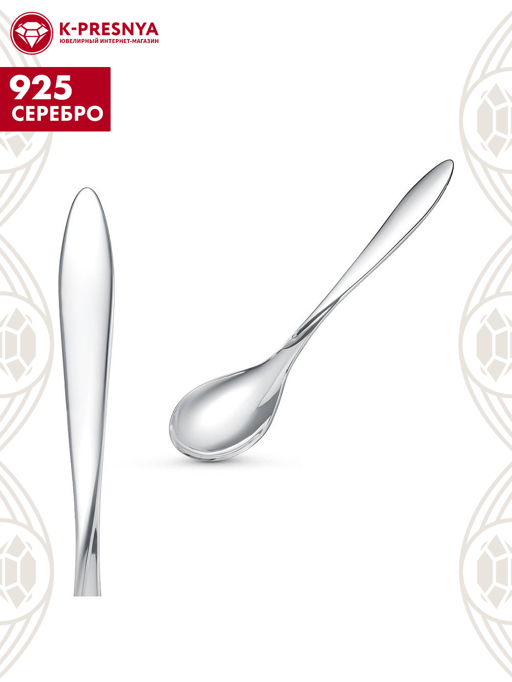 Аккуратная и удобная ложка выполнена из серебра 925°, Поверхность ложки отполирована вручную, что придает изделию невероятный блеск.