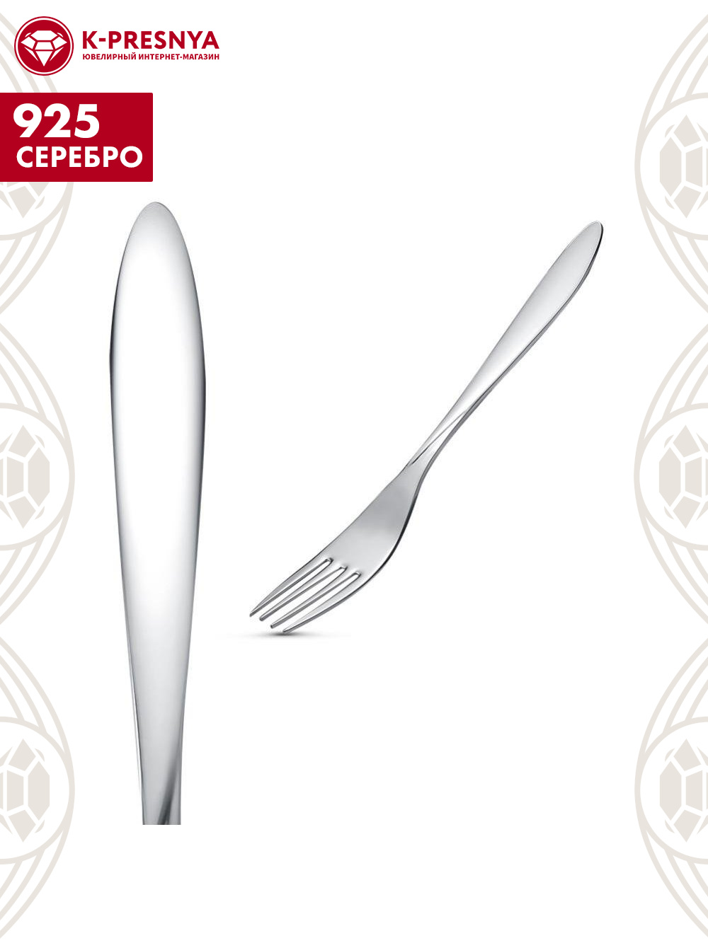 Вилка столовая "анталия" серебро 925 пробы, без покрытия, без вставок