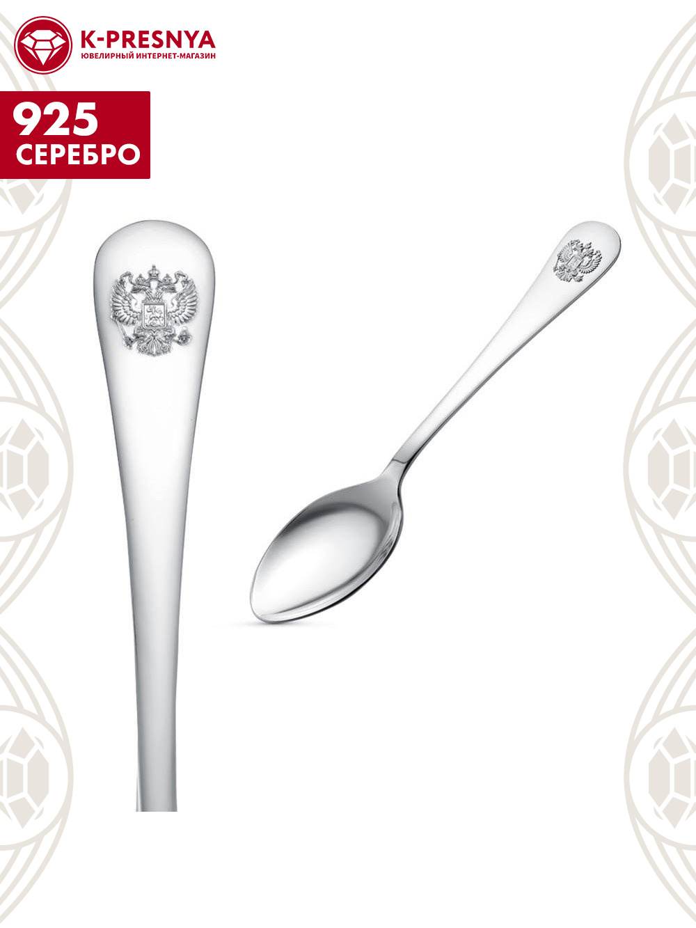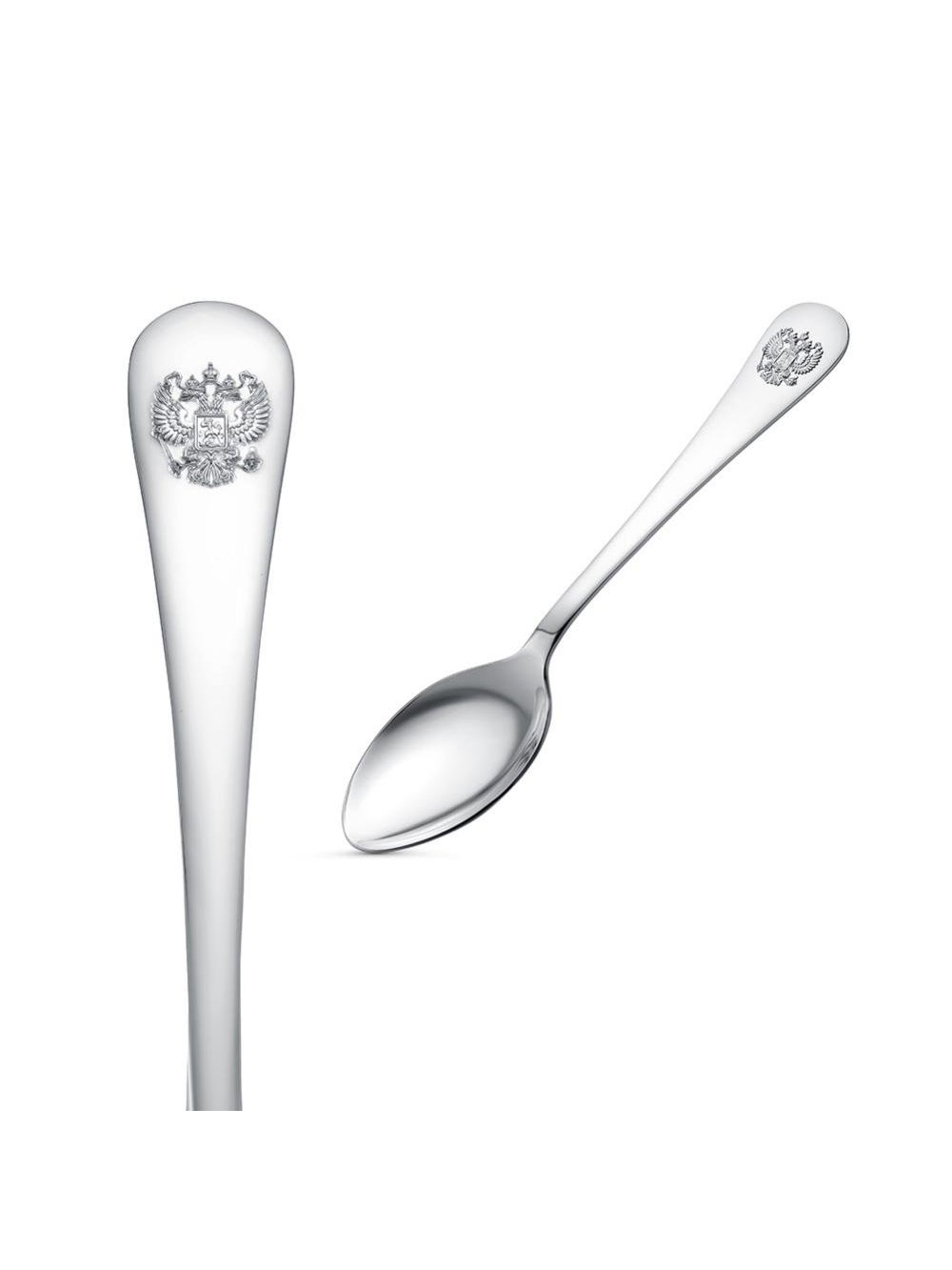 Аккуратная и удобная ложка выполнена из серебра 925°. На черенке ложки расположен двуглавый орел, который символизирует единство и суверенитет России.