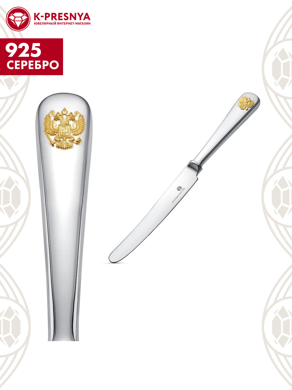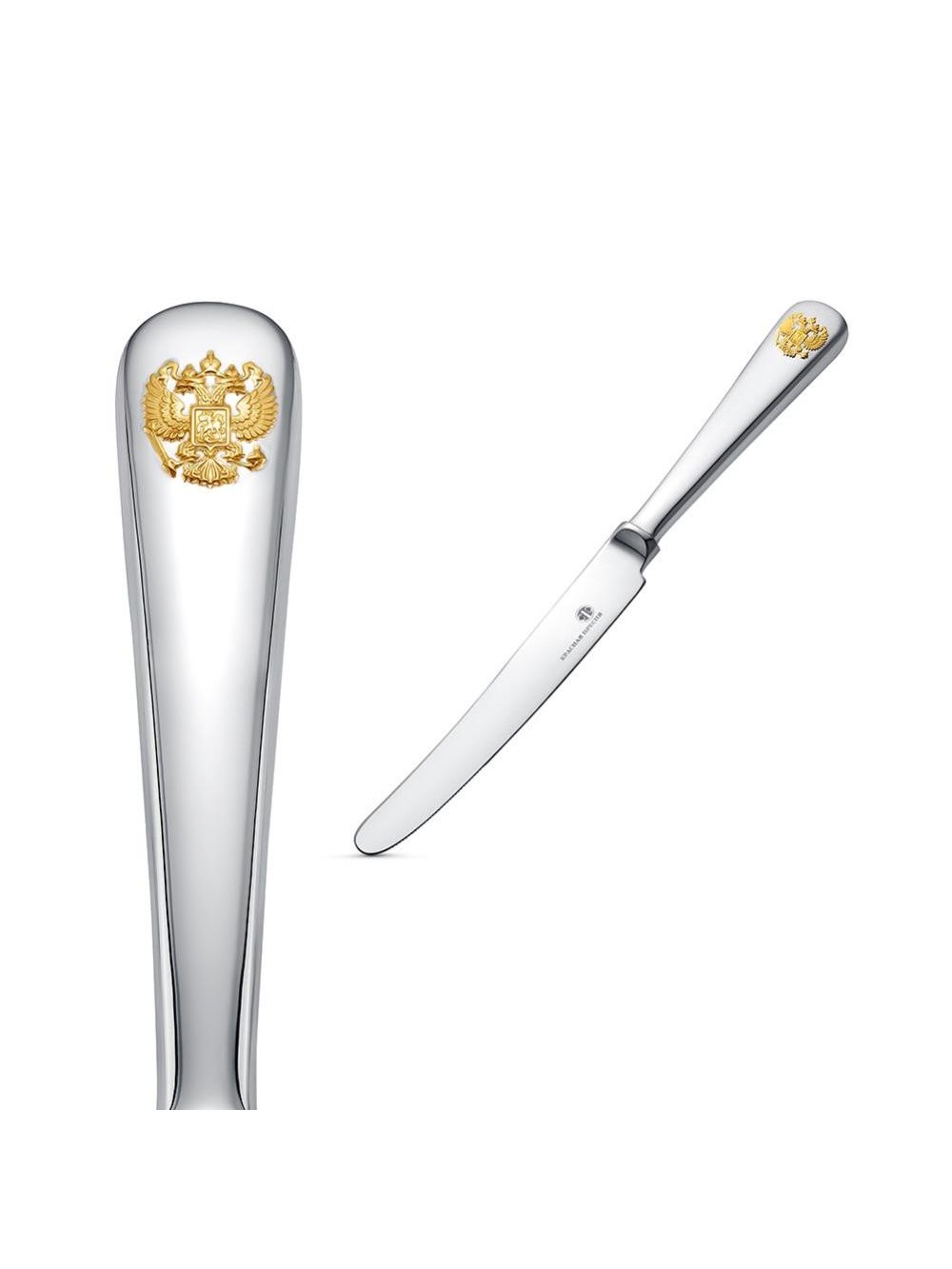 Нож столовый "герб" серебро 925 пробы, покрытие - выборочное золочение, без вставок