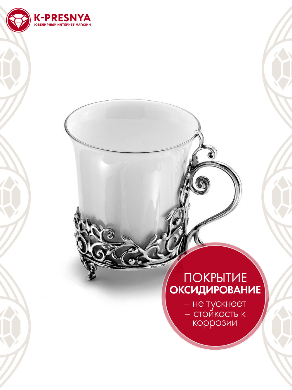 Подстаканник серебро 925 пробы, покрытие - оксидирование, без вставок