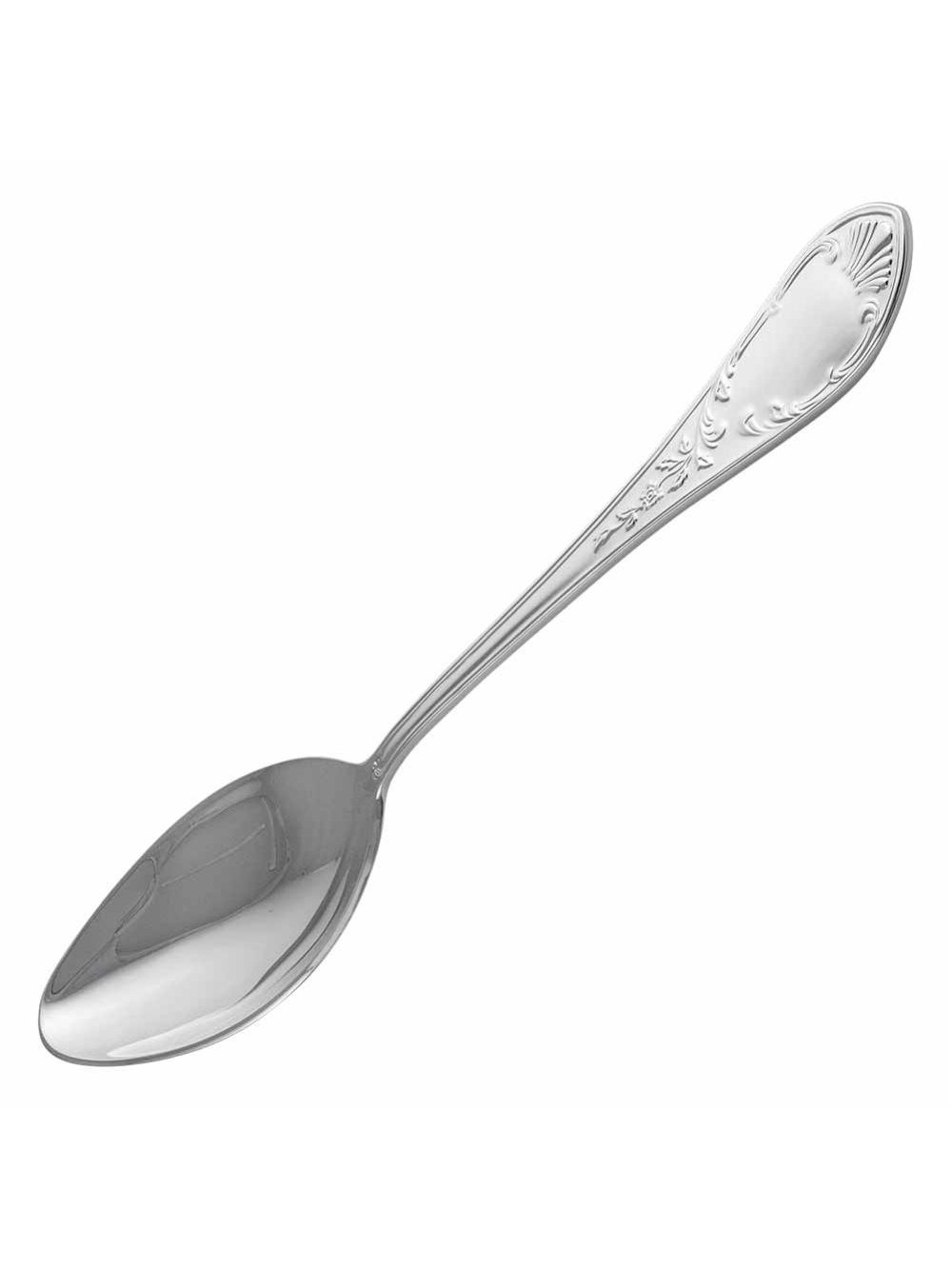 Аккуратная и удобная ложка выполнена из серебра 925°. Изделие с изысканным дизайном и красивым растительным узором на черенке, идеально подойдет для первых и вторых блюд.