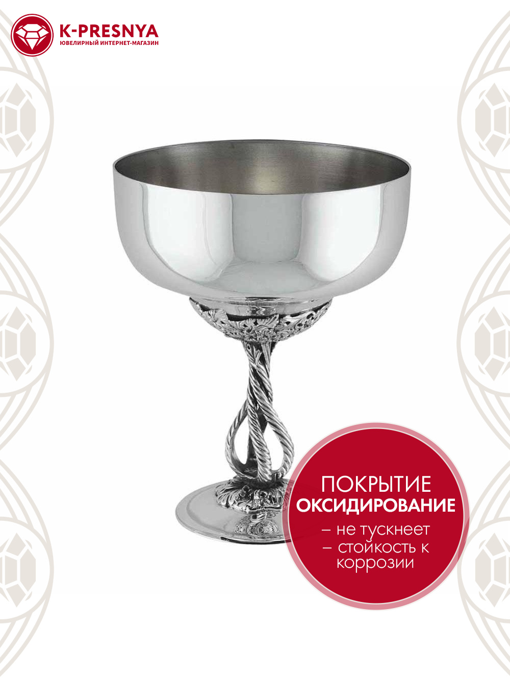 Идеально гладкая ваза с отполированной поверхностью выполнена из серебра 925° с изящной ножкой в виде виноградной лозы.